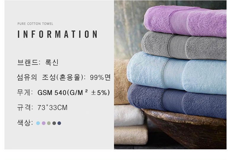 | 품명 및 모델명 | 록신 호텔수건 타월 코면사 부드러운 | 인증/허가 사항 | 해당없음 |