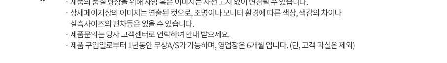 - ㆍ모니터 해상도의 차이로 인해 색상이나 이미지가 실제와 달라, 고객이 단순 변심으로 교환/반품을 무료로 요청하는 경우
