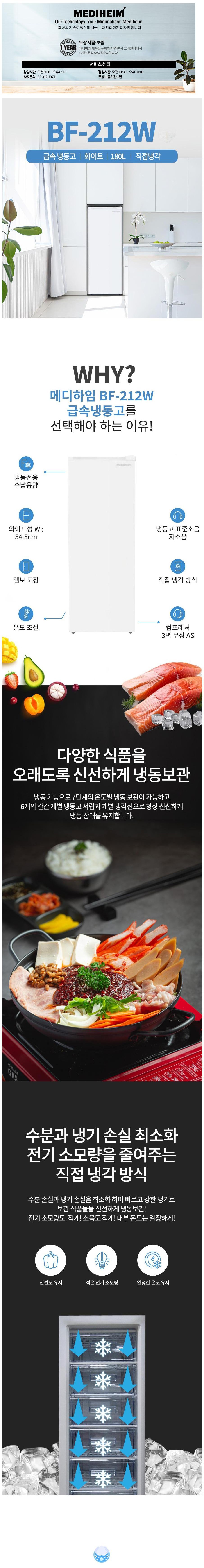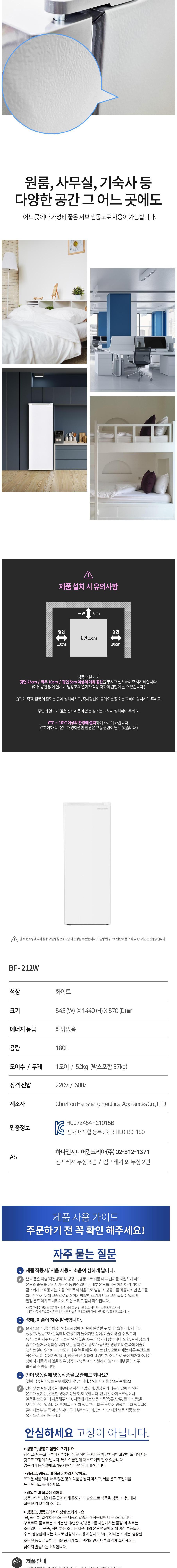 | 품명 및 모델명 | 전기냉동고 / BF-212W | KC 인증정보 | HU072464-21015D / R-R-HE0-BD-180 |