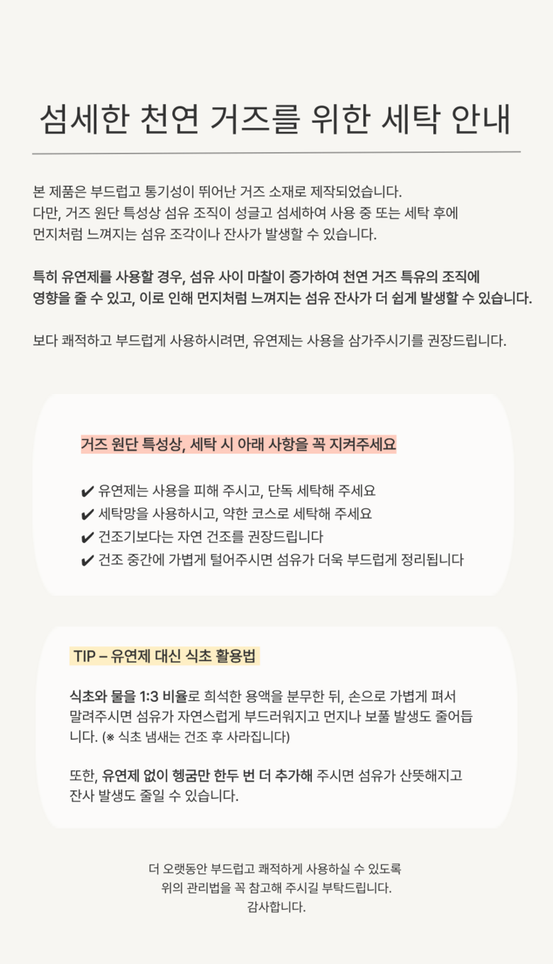 | 색상 | 상품 상세페이지 참조 | 재질 | 면 60% + 인견(레이온) 40% |
