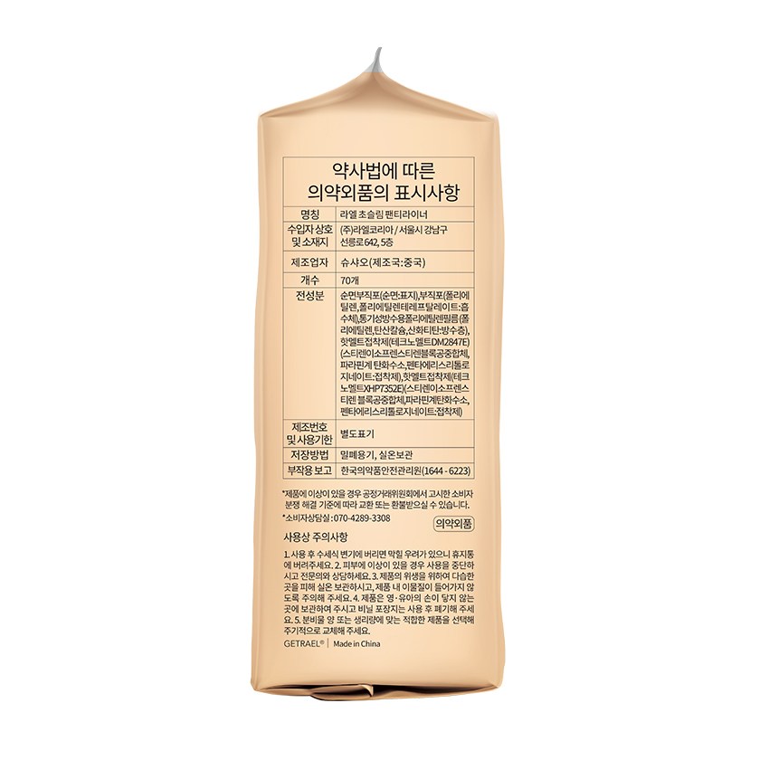 | 품명 및 모델명 | 라엘 초슬림 팬티라이너 | 인증/허가 사항 | 의약외품 |