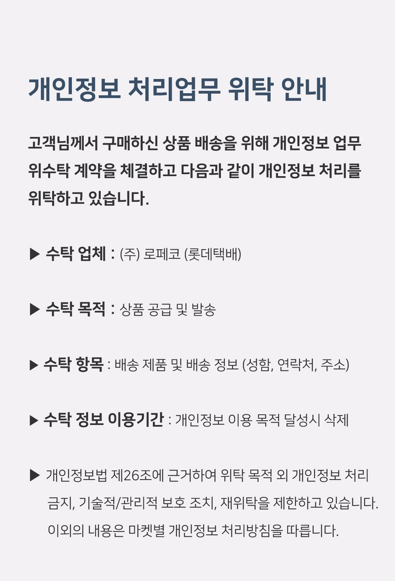| 교환/반품 비용 (왕복비용) | 8,000원 - 단, 고객 변심의 경우에만 발생 - 도서산간 지역 배송불가 |