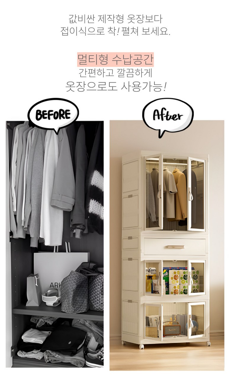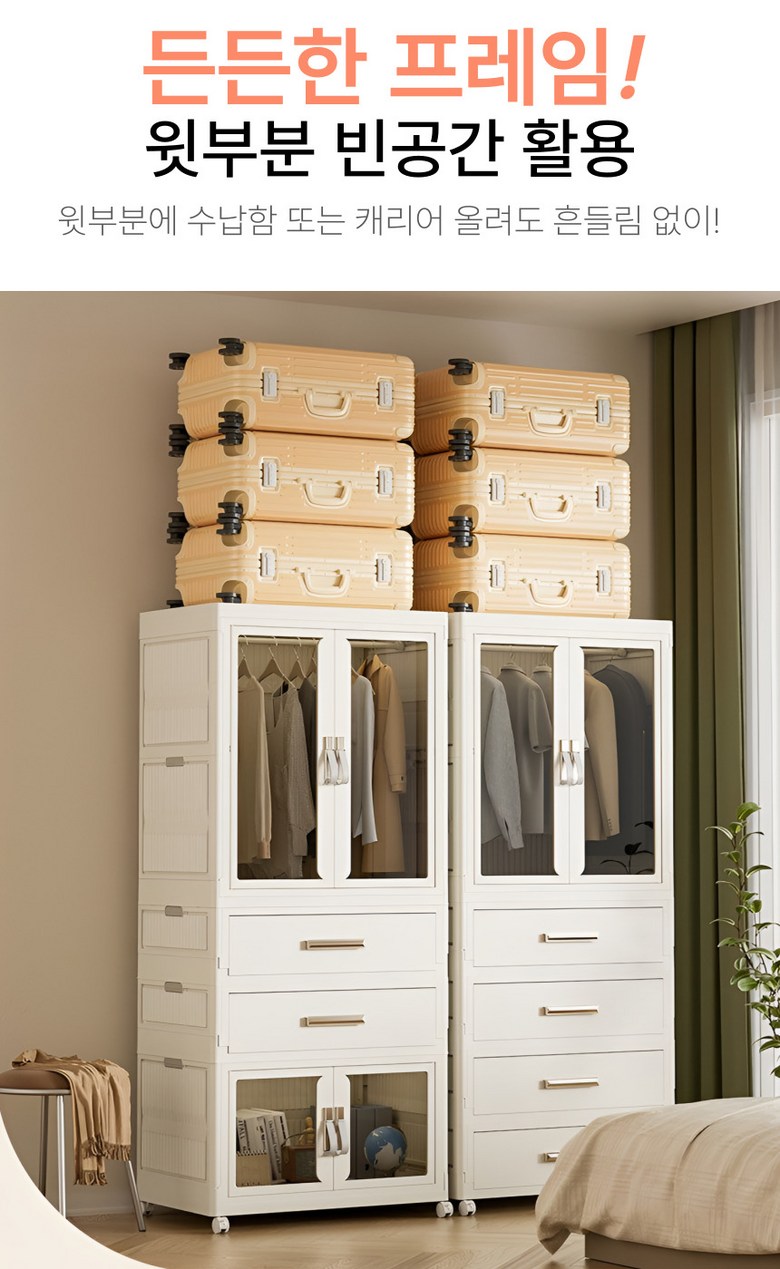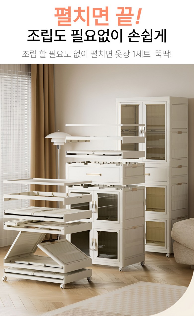 [파격할인]수납하마 접이식 틈새 옷장 대용량 멀티 리빙박스 투명 오픈도어 수납장 정리함