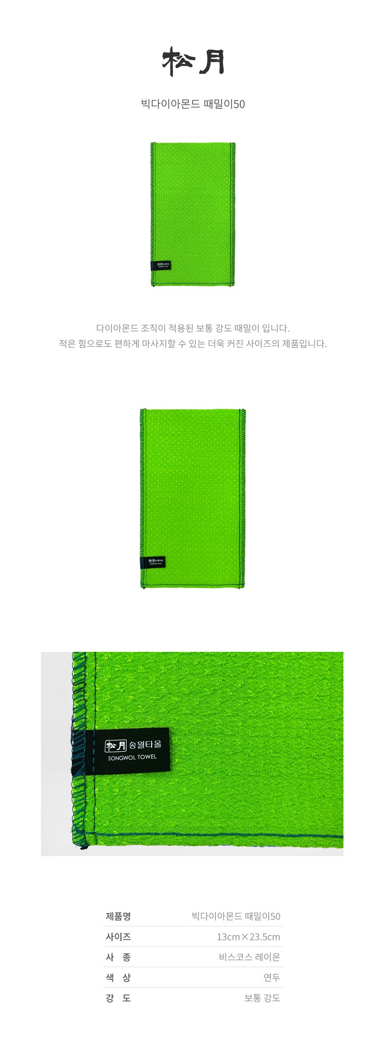 | 품명 및 모델명 | 송월타월 빅다이아몬드 때밀이 타월 50 | 인증/허가 사항 | 해당없음 |