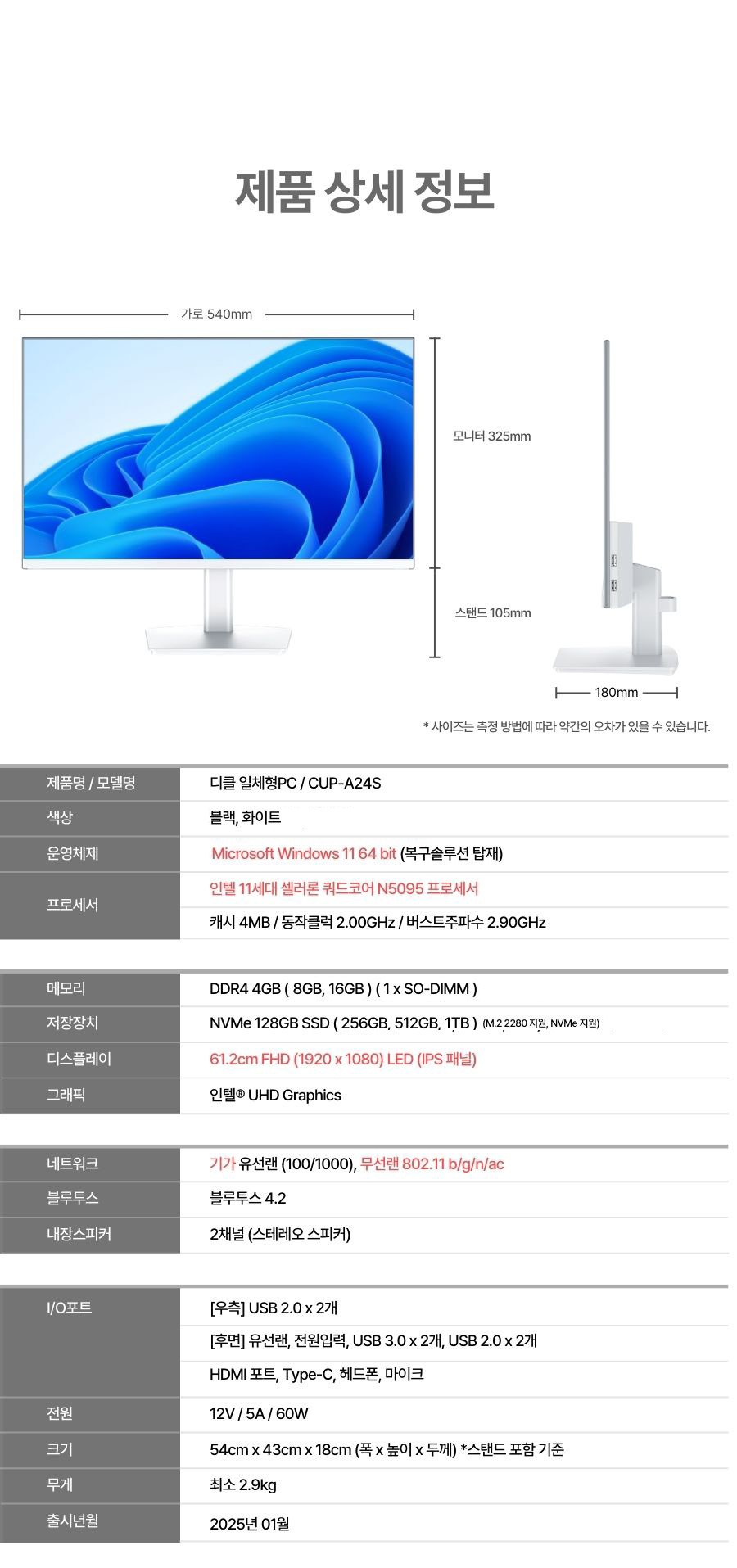 - CPU 모델 번호: 셀러론-N5095
