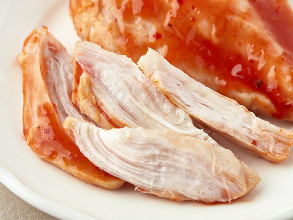 쫄깃쫄깃한 결이 살아있는 벌키니 칠리맛 닭가슴살이에요. 촉촉한 육질 사이사이 스며든 매콤하면서도 달착지근한 풍미가 특징이랍니다. 전자레인지로 간편히 조리할 수 있어요. 따뜻하게 조리한 후, 그대로 드셔도 좋고요. 샐러드 토핑으로 활용하셔도 맛있어요.