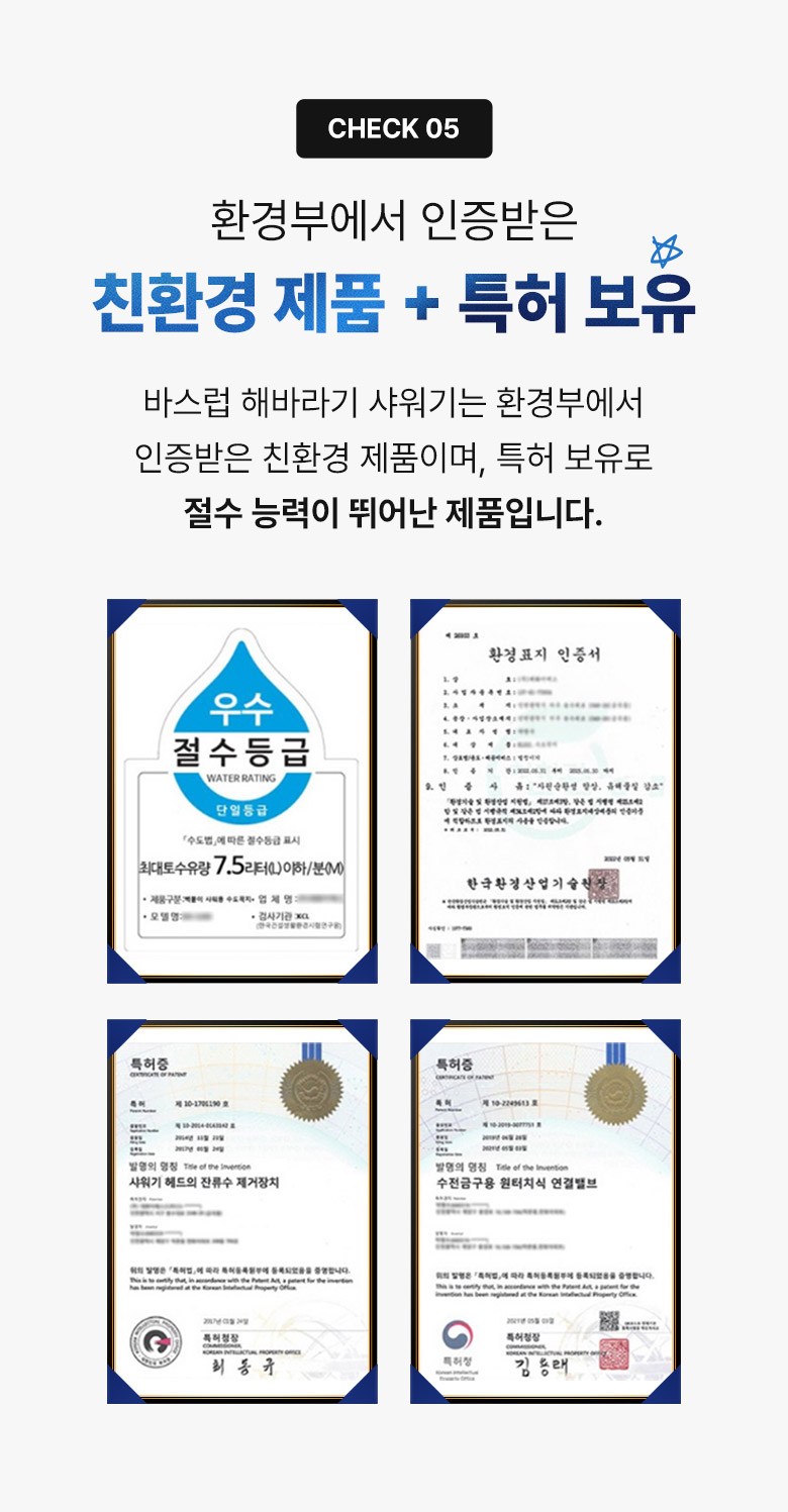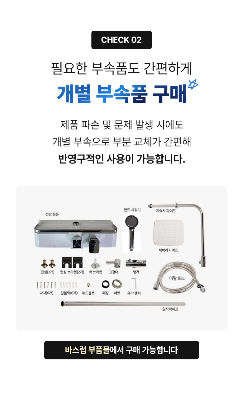 | 품명 및 모델명 | 바스럽 선반형 해바라기 샤워기 | 인증/허가 사항 | 환경부 인증 친환경,절수 제품 |