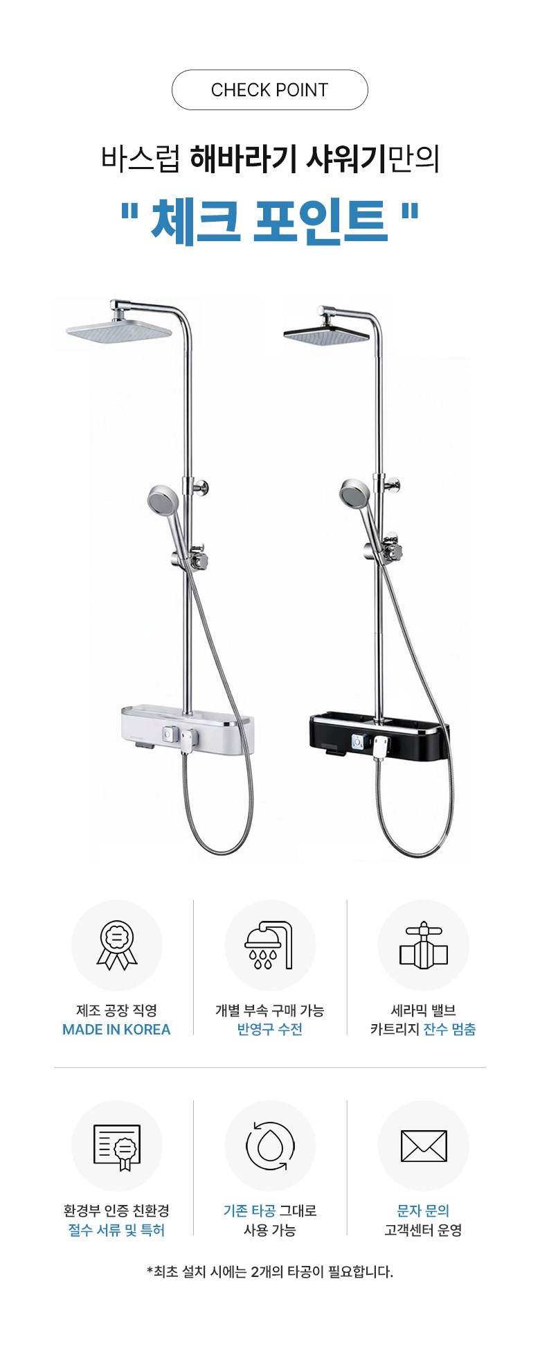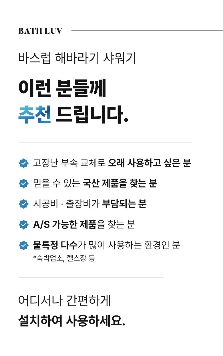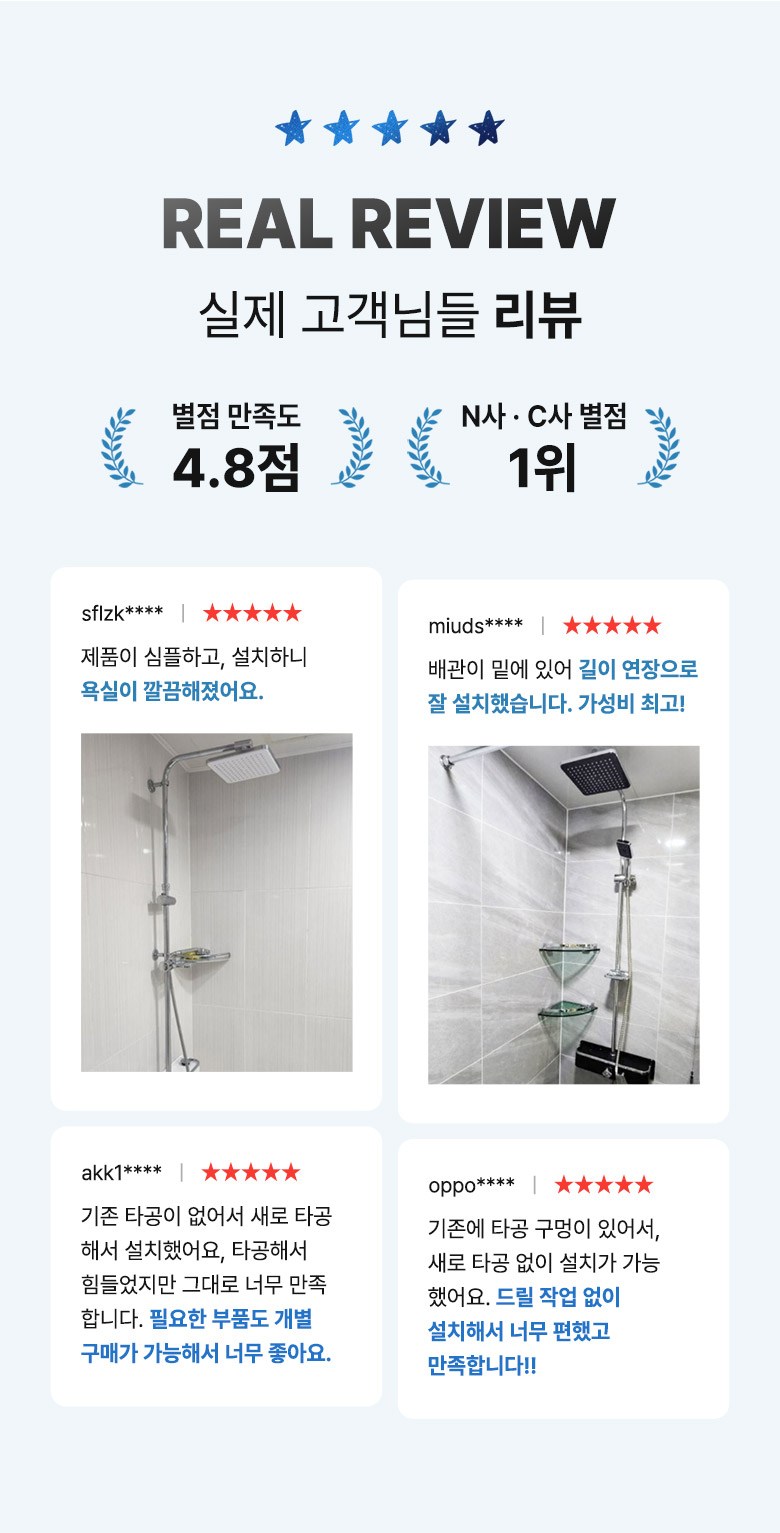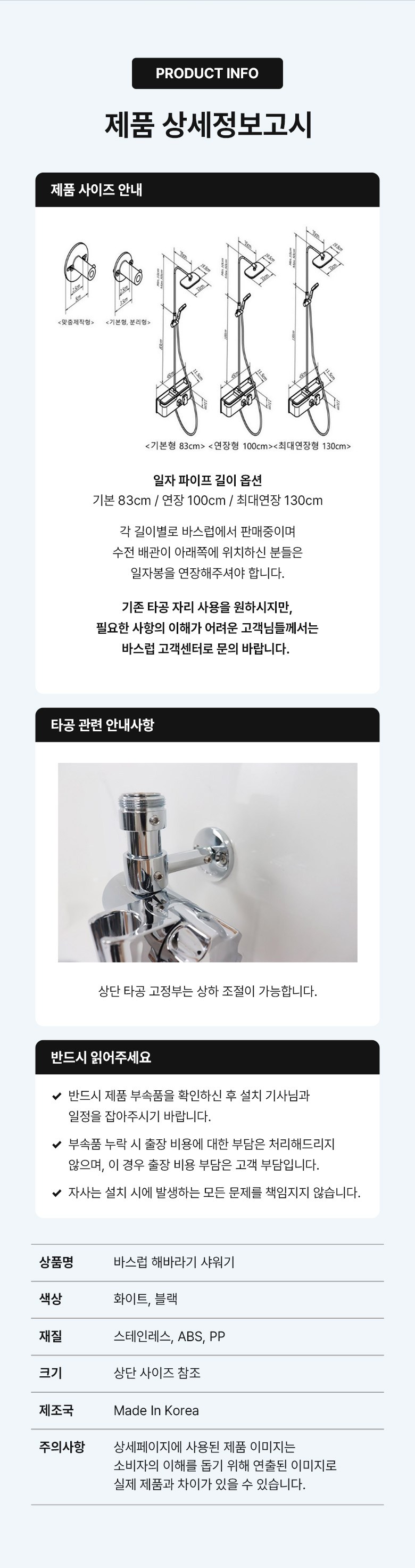 설치 후 물을 틀어 반드시 누수 여부를 확인한 뒤 사용해주세요.