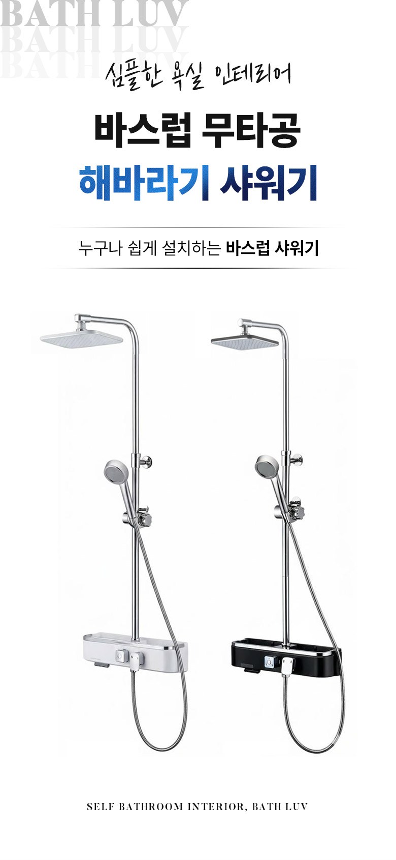 바스럽 국산 무타공 선반형 해바라기 샤워기 [기존 타공 사용 가능]