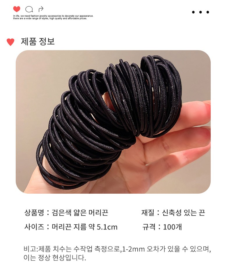 | 종류 | 블랙 끈 헤어 끈 | 소재 | 상품 상세페이지 참조 |