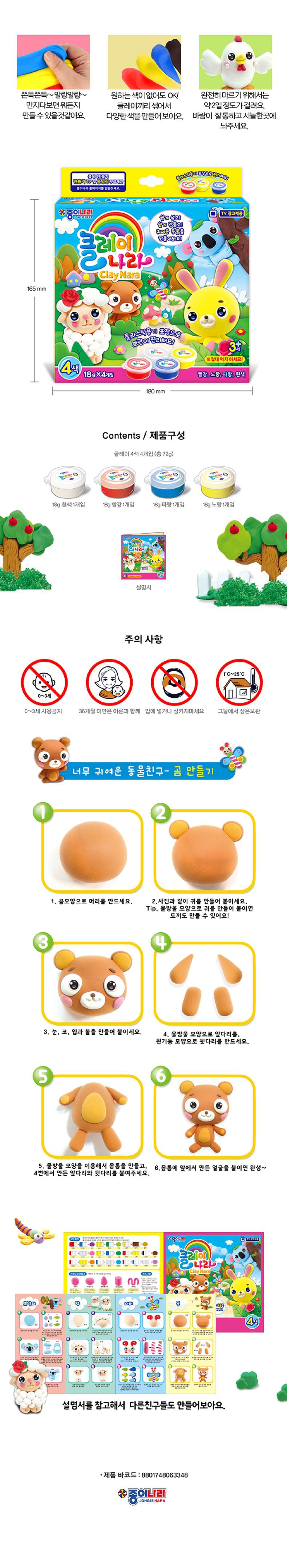 | 품명 및 모델명 | 동물친구들_클레이나라 하양, 파랑, 노랑, 빨강 1개 | KC 인증정보 | CB065J0001-1006 |