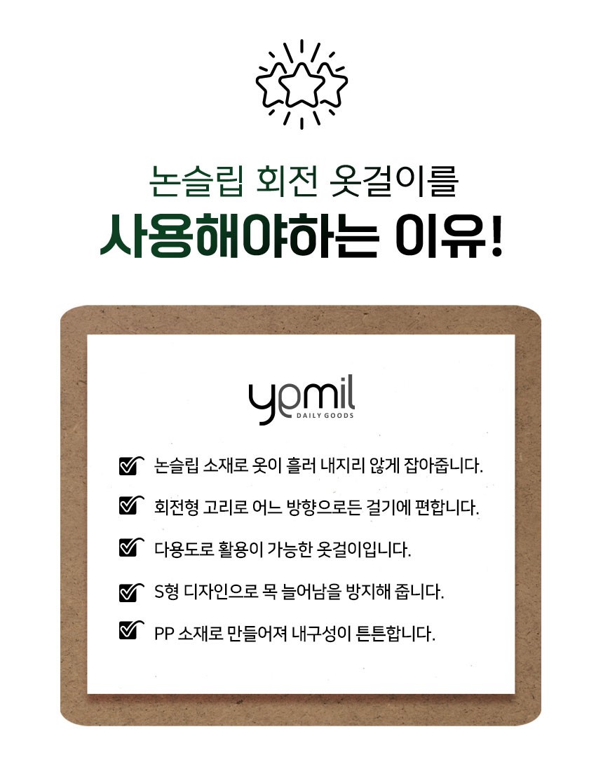 | 품명 및 모델명 | 예밀 논슬립 회전 옷걸이 | 인증/허가 사항 | 해당없음 |
