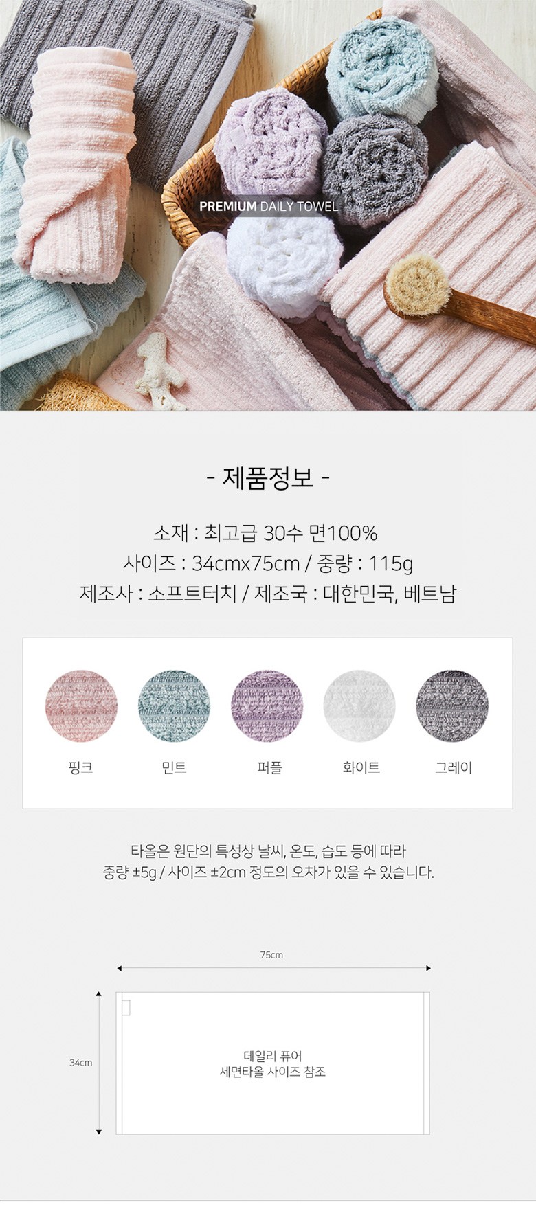 | 품명 및 모델명 | 소프트터치 데일리 퓨어 수건 | 인증/허가 사항 | 해당없음 |