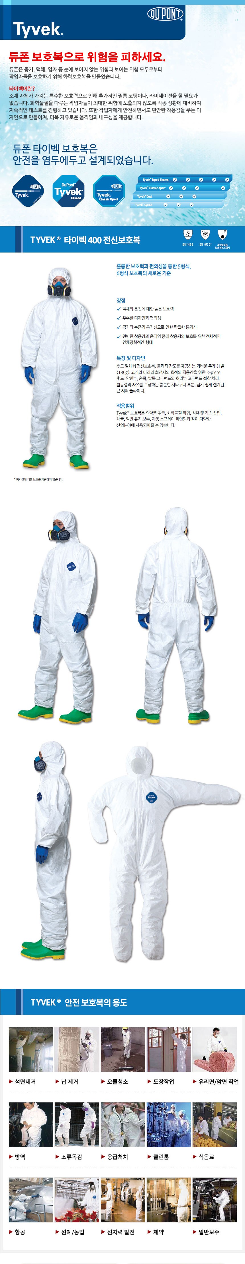| 품명 및 모델명 | 보호구(화학물질용 보호복) / DupontTM Tyvekⓡ 400 TY198S | 인증/허가 사항 | 5형식: 21-AV4CX-0017ㅣ6형식: 21-AV4CX-0018 |
