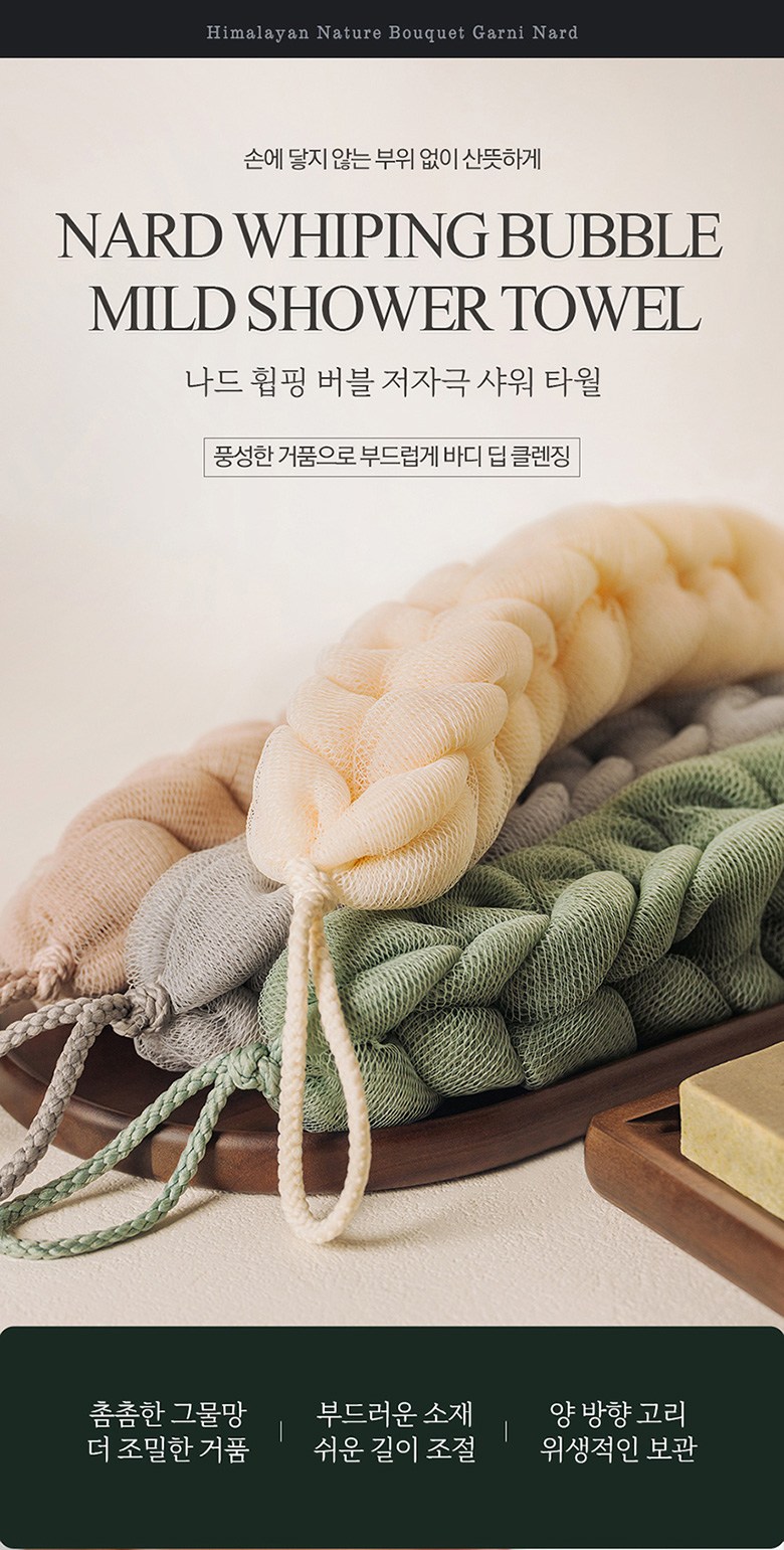 | 품명 및 모델명 | 부케가르니 나드 휩핑 버블 저자극 샤워 타월 | 인증/허가 사항 | 해당없음 |