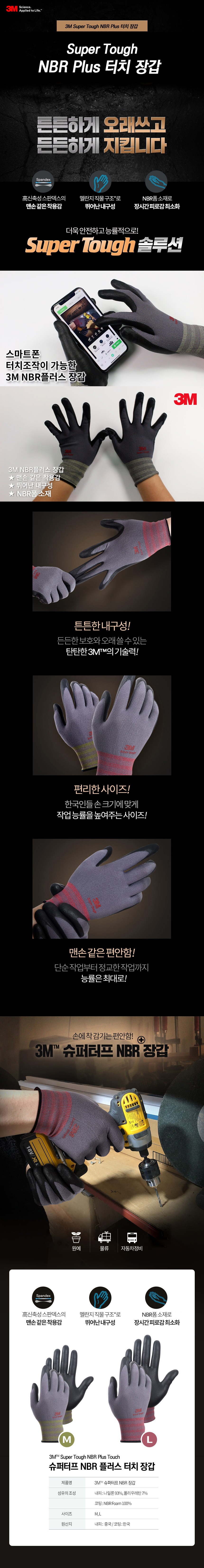 | 품명 및 모델명 | 3M 슈퍼터프 NBR 장갑 | 인증/허가 사항 | 해당 없음 |