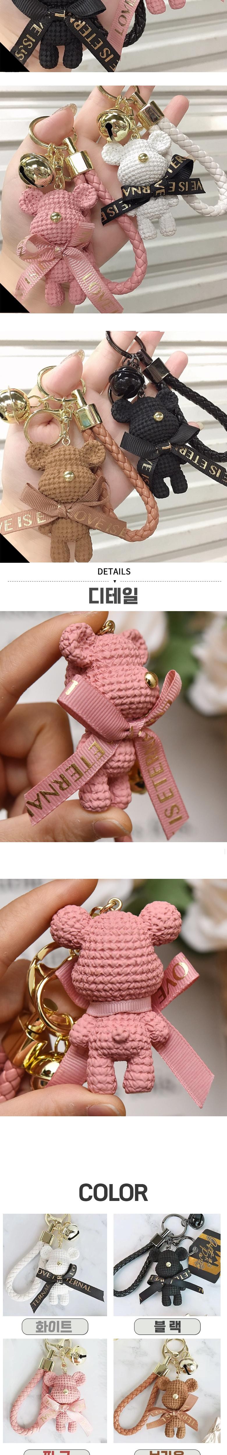 시즌얼홈 리본 곰돌이 열쇠고리 2종 세트, 블랙 + 화이트, 1세트
