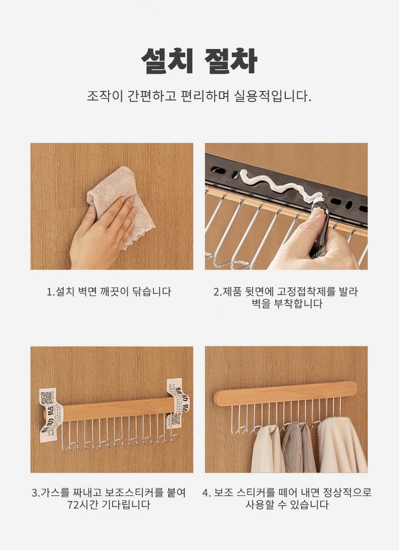 콜콜러브 다용도 원목 옷걸이 12구 후크형 넥타이 걸이 속옷 스카프 벨트 가방 모자 머플러 옷장 정리 행거 다기능 옷고리훅