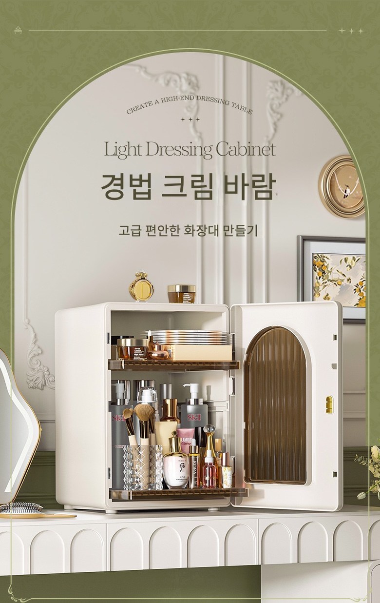 | 품명 및 모델명 | 방진 대용량 화장품 수납함 가정용 라이트 럭셔리 화장품 수납장 | 인증/허가 사항 | no |