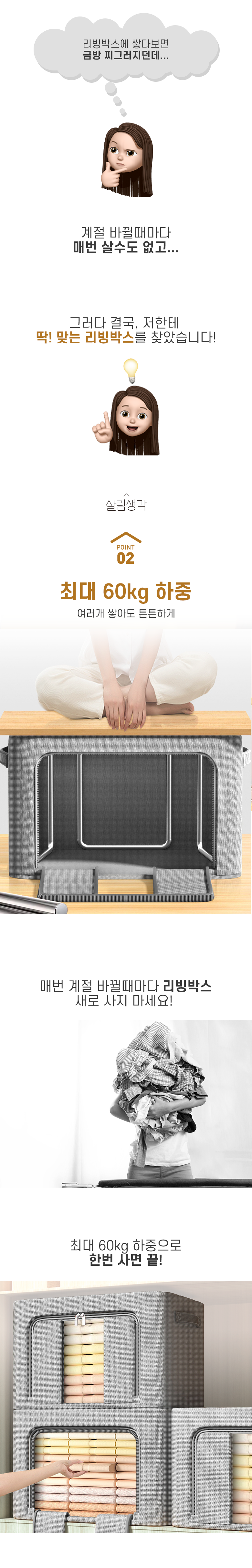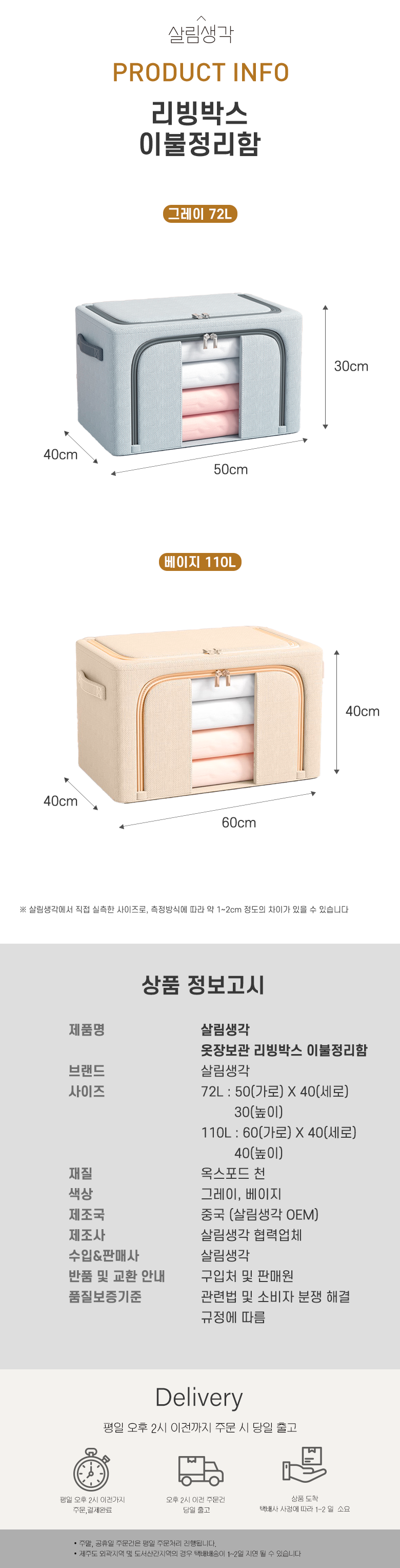 | 품명 및 모델명 | 살림생각 옷장 보관 리빙박스 이불정리함 | 인증/허가 사항 | 해당사항 없음 |