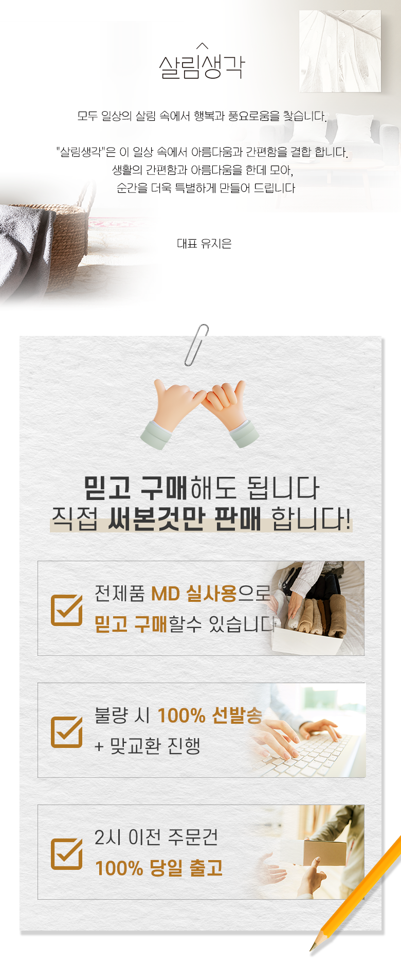 - ㆍ모니터 해상도의 차이로 인해 색상이나 이미지가 실제와 달라, 고객이 단순 변심으로 교환/반품을 무료로 요청하는 경우