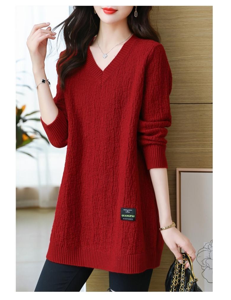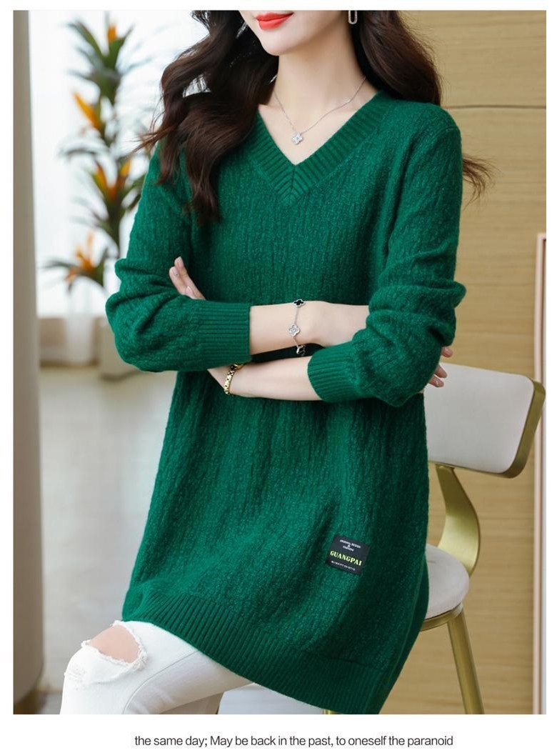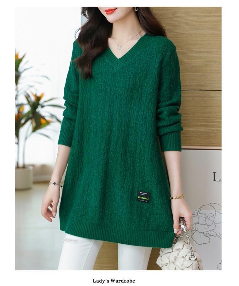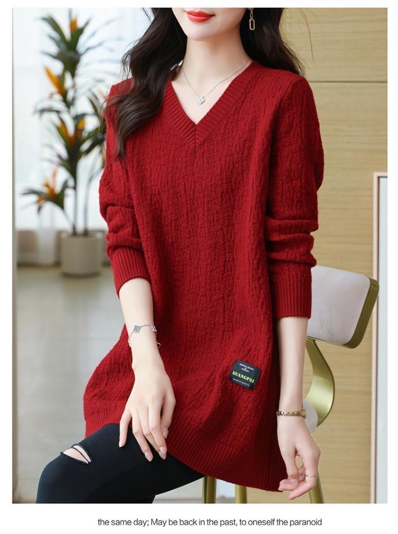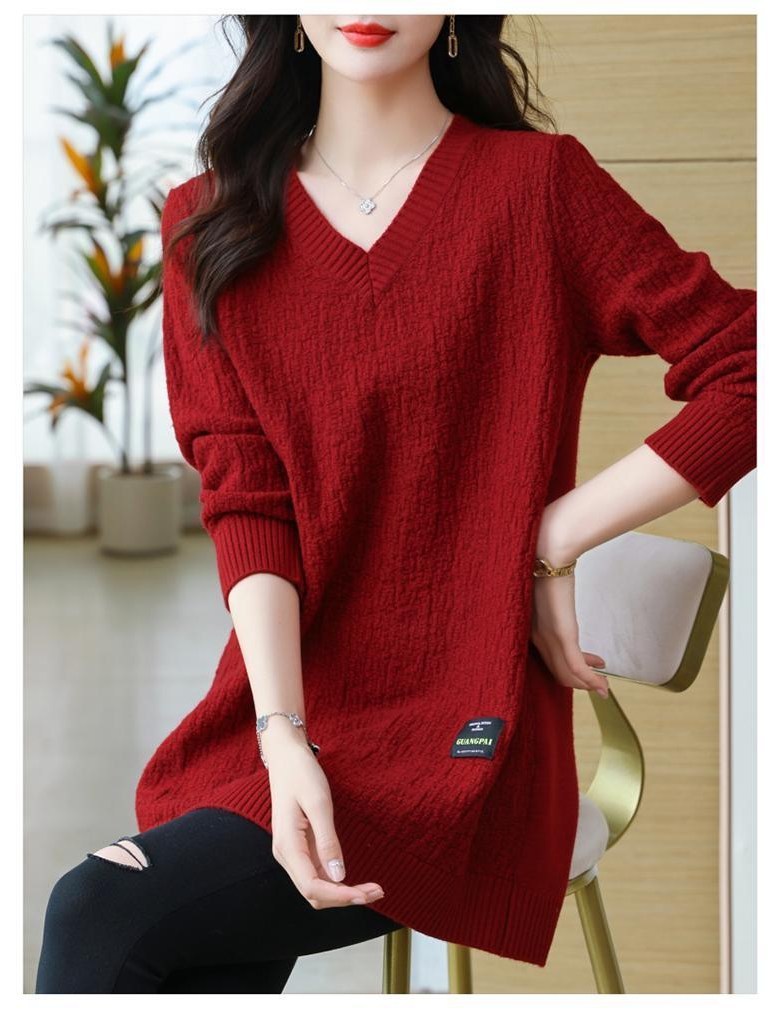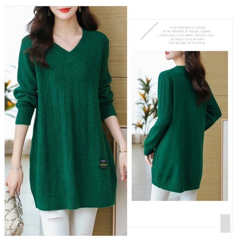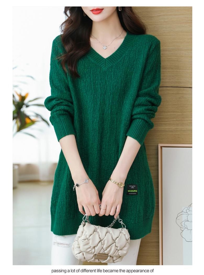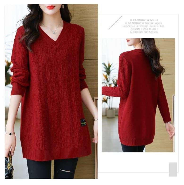 (완전 편한) 150kg까지 빅사이즈 여성 브이넥 롱 니트 스웨터 겨울 날씬해보이는 우아한 루즈핏 이너 레드 그린색 블루 무지 보송 미디티 큰옷 여성의류 3xl 하프 데일리 니트