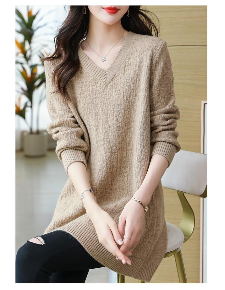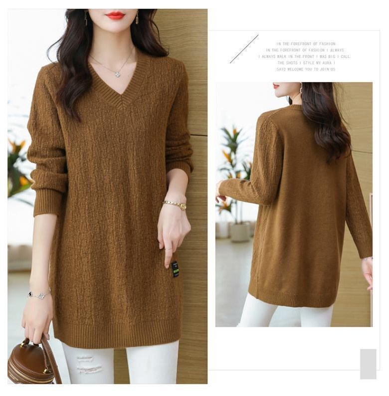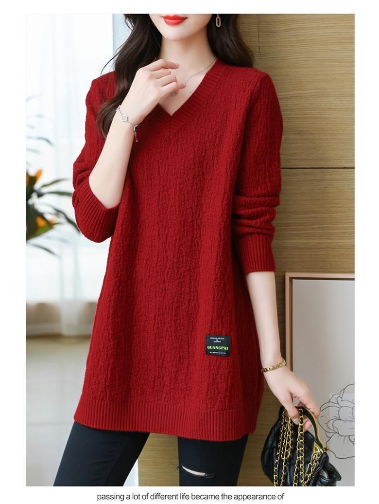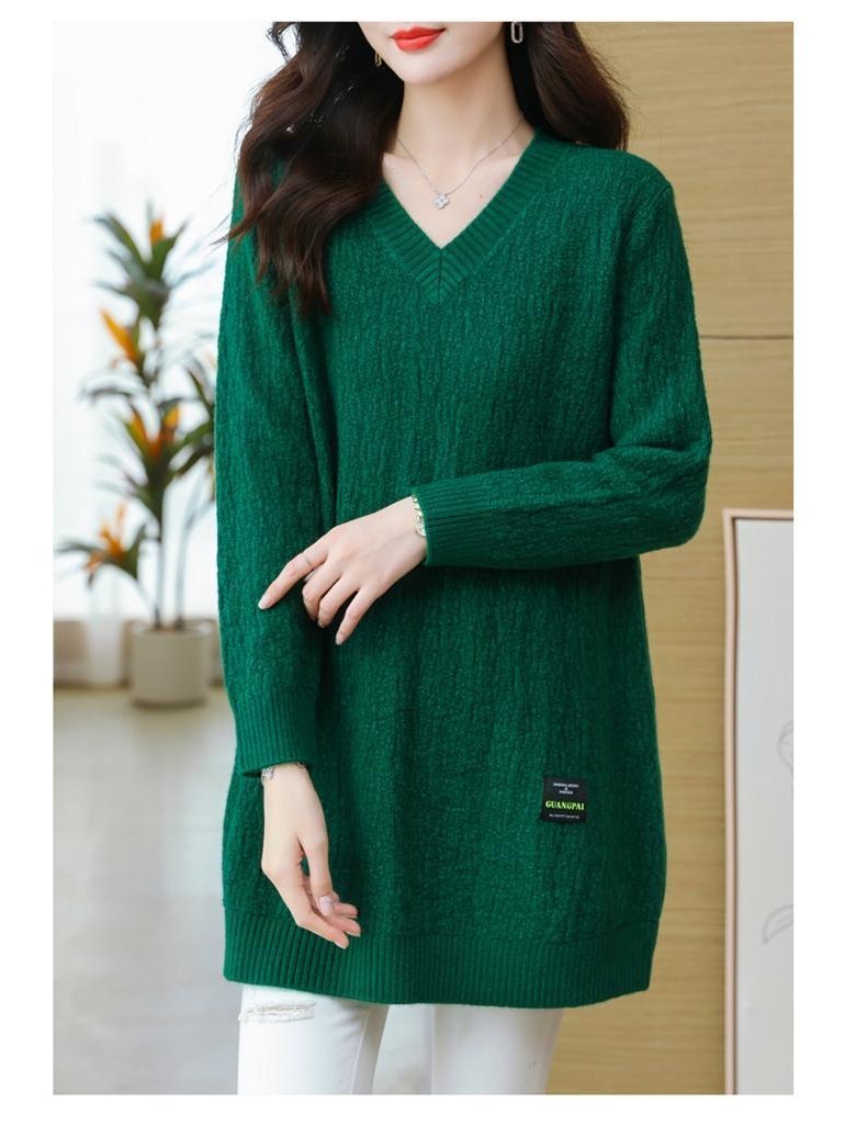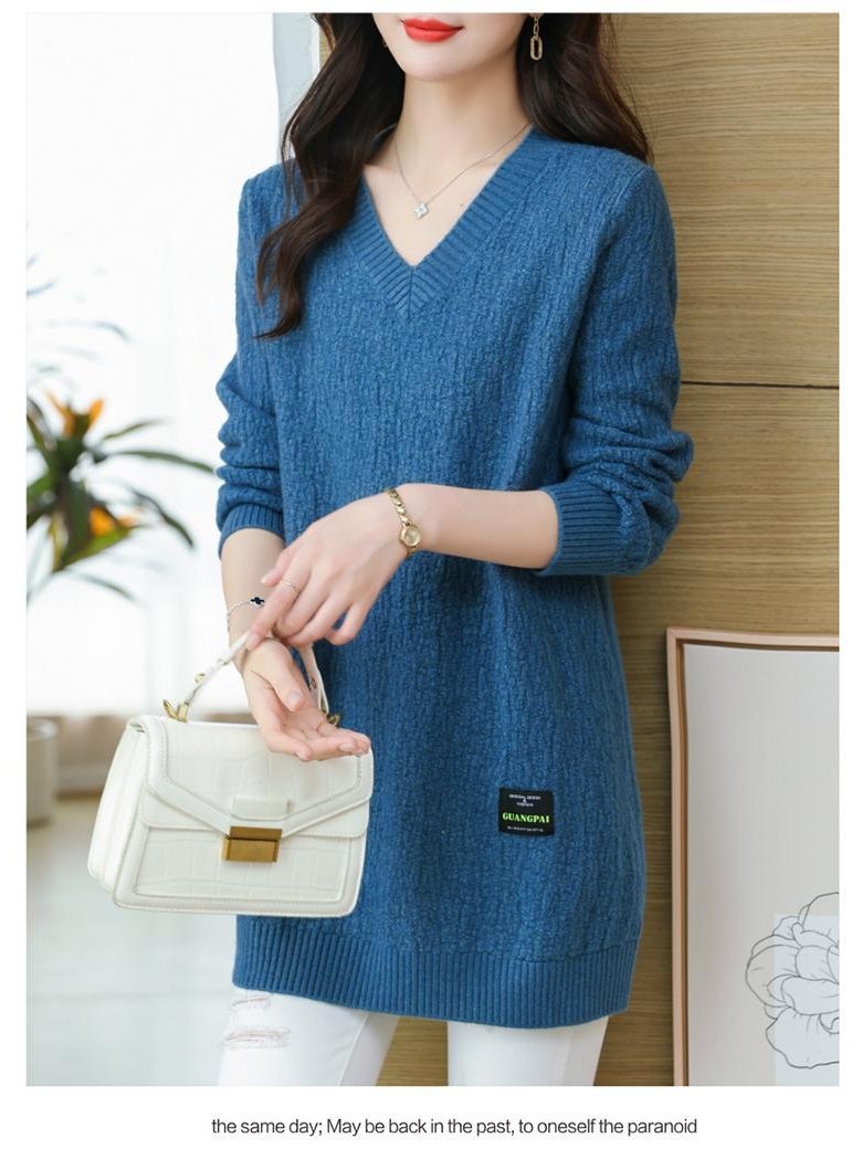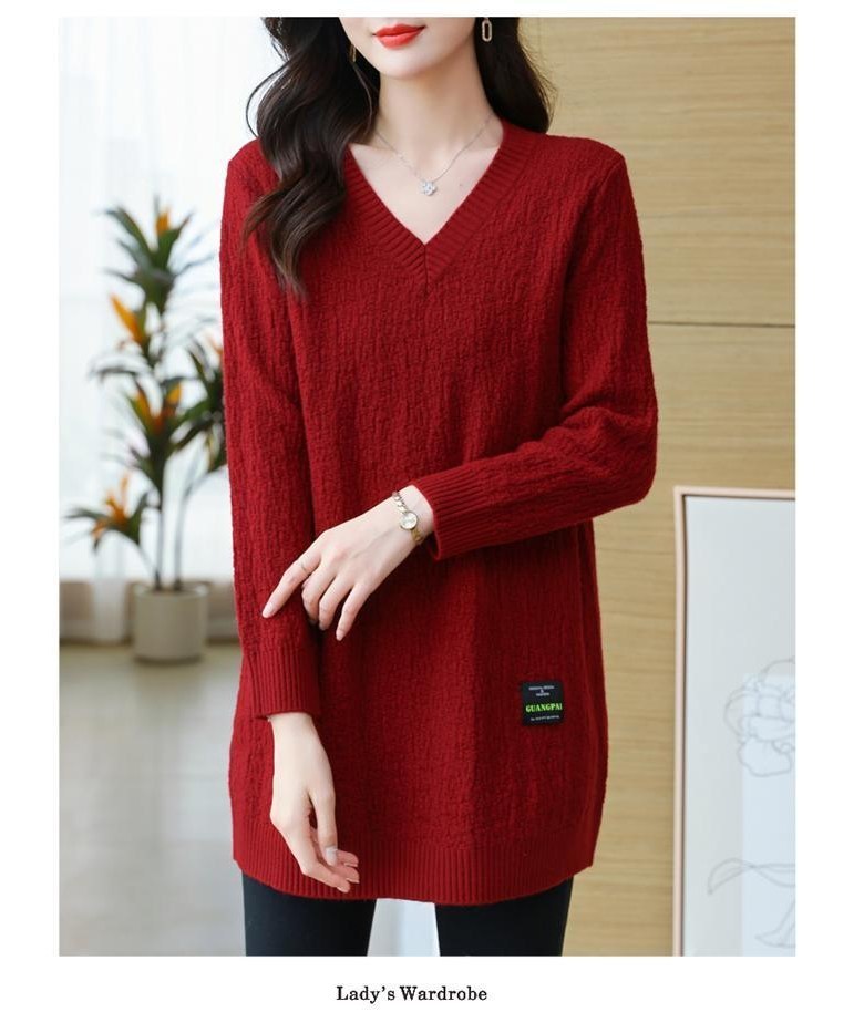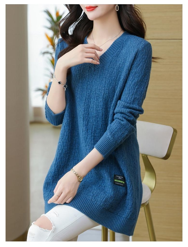 (완전 편한) 150kg까지 빅사이즈 여성 브이넥 롱 니트 스웨터 겨울 날씬해보이는 우아한 루즈핏 이너 레드 그린색 블루 무지 보송 미디티 큰옷 여성의류 3xl 하프 데일리 니트