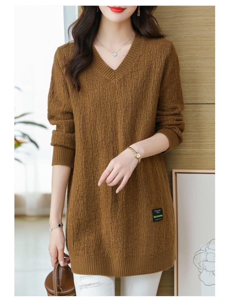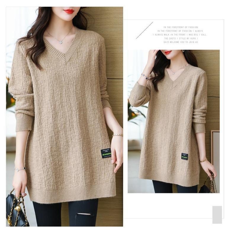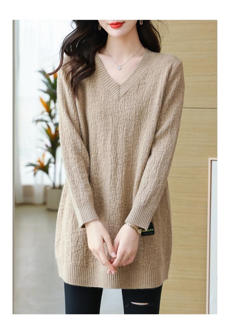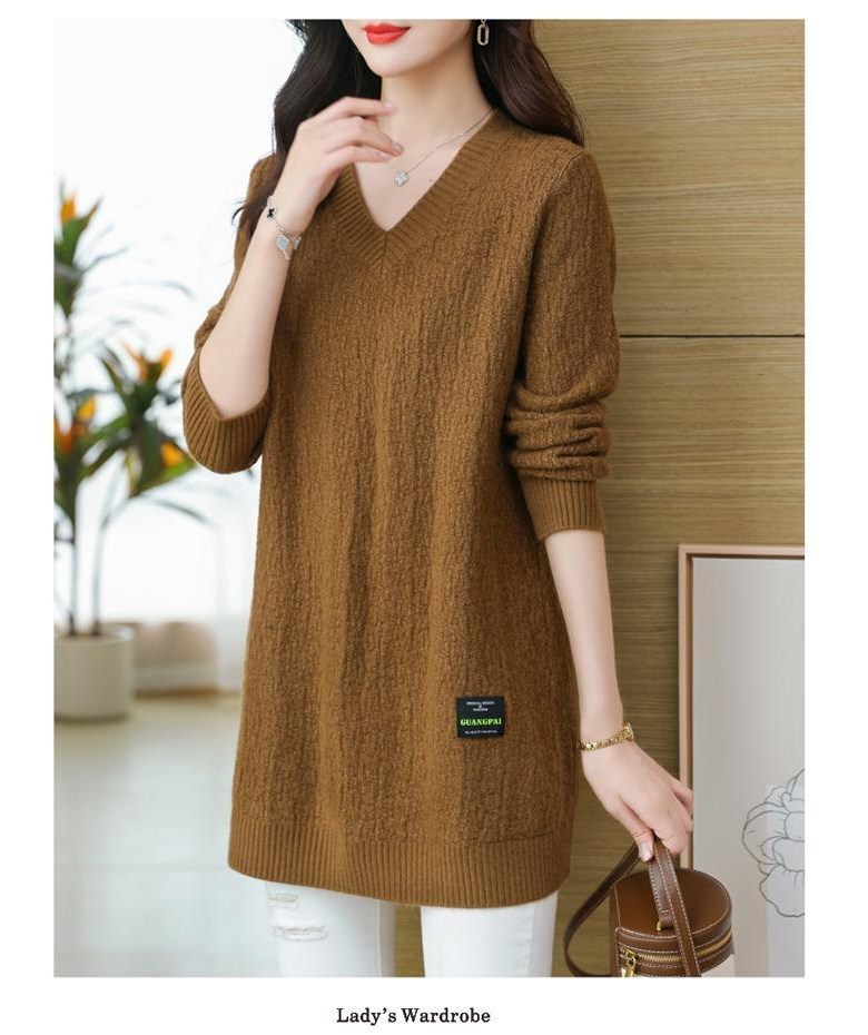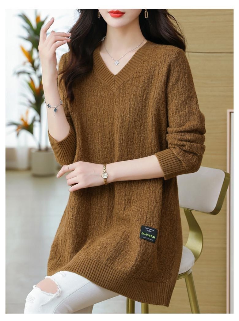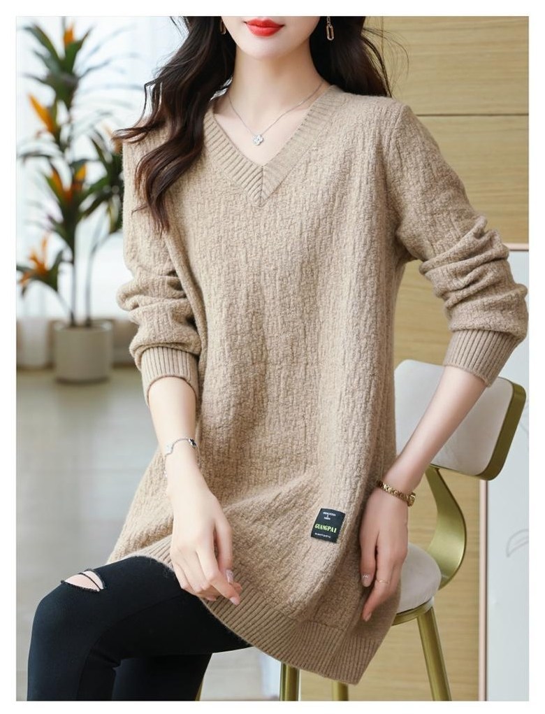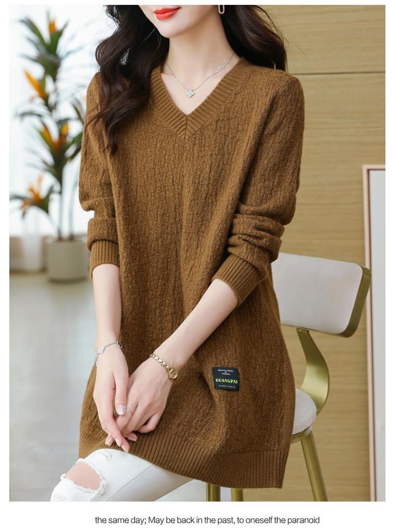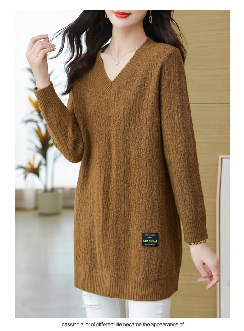 (완전 편한) 150kg까지 빅사이즈 여성 브이넥 롱 니트 스웨터 겨울 날씬해보이는 우아한 루즈핏 이너 레드 그린색 블루 무지 보송 미디티 큰옷 여성의류 3xl 하프 데일리 니트