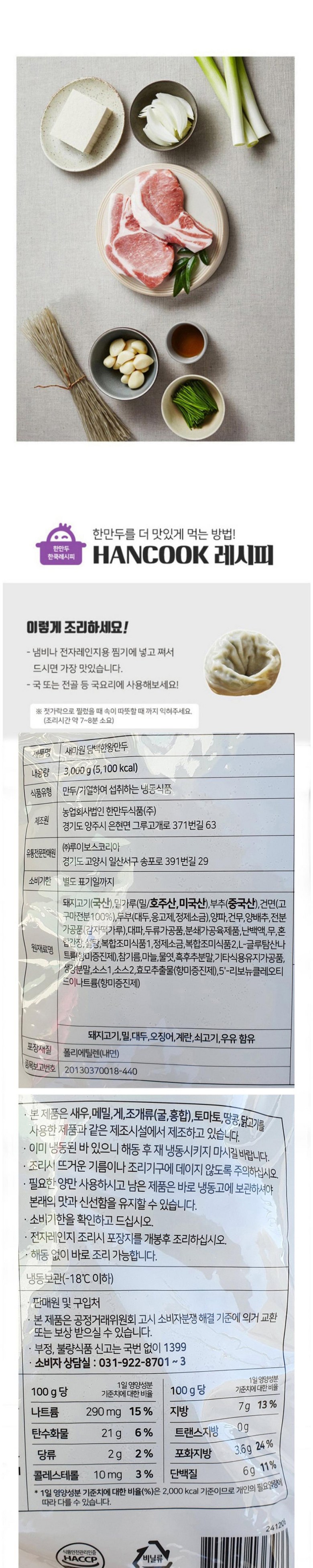 ★.대용량(업소용) 제품은 브랜드가 한만두 -> 새마원 으로 변경됩니다.