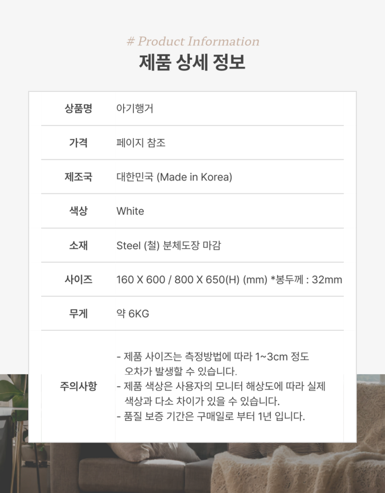 | 크기 | 상품 상세페이지 참조 | 중량 | 상품 상세페이지 참조 |