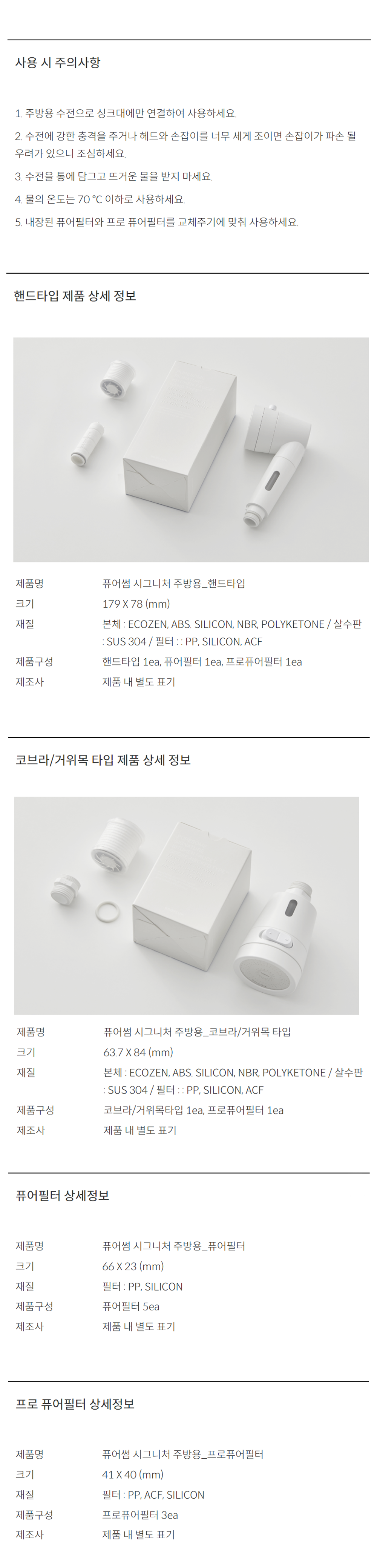 | 품명 및 모델명 | 바디럽 퓨어썸 시그니처 주방용 프로 퓨어필터 3p | 인증/허가 사항 | 해당없음 |
