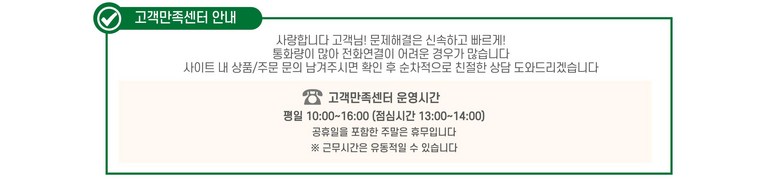 | 소비자상담 및 교환반품 문의 | 쿠팡고객센터 1577-7011 배송 및 환불/교환에 대한 문의는 마이쿠팡-고객센터 내 상담하기를 이용해주세요. | ||