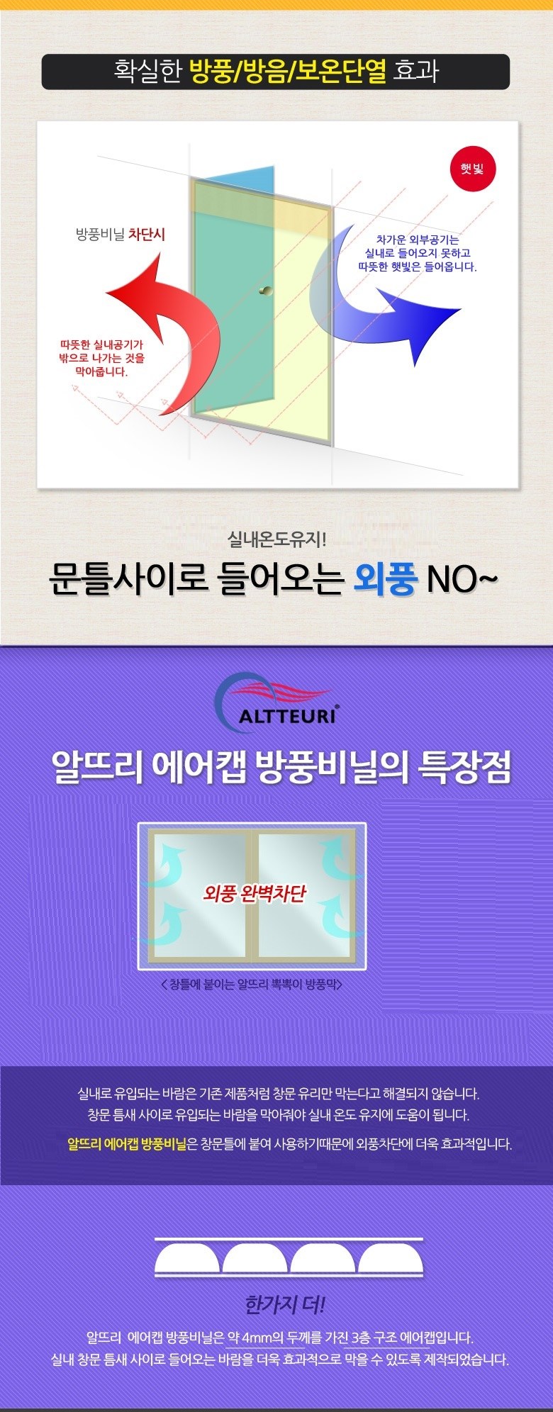 - 방풍을 돕는 4mm 두께의 3층 구조 에어캡