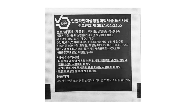 | 제조국(원산지) | 중국 / 알콜솜: 컨텐츠참조 | 제조자(수입자) | 본품 : (주)멕시드(정확한 제조사 또는 수입사 정보 업체미제공) / 알콜솜 : 컨텐츠참조 |