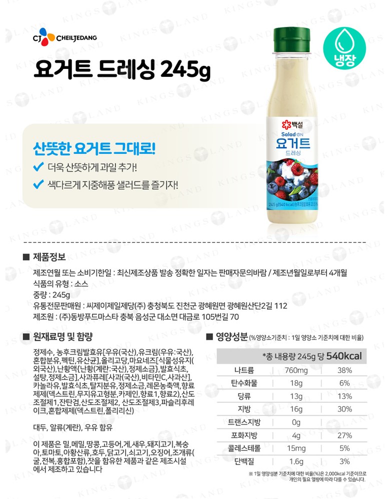 | 제품명 | 상품 상세페이지 참조 | 식품의 유형 | 상품 상세페이지 참조 |
