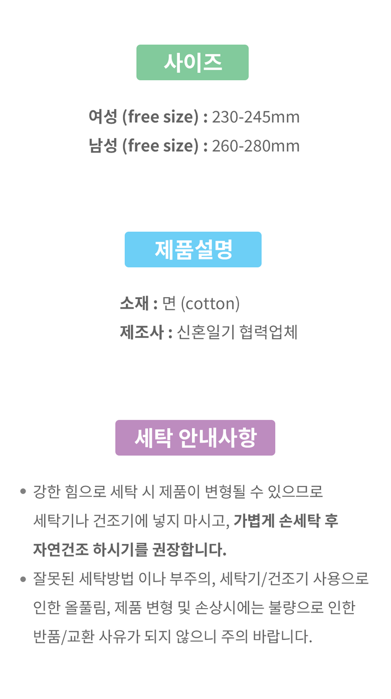- ㆍ모니터 해상도의 차이로 인해 색상이나 이미지가 실제와 달라, 고객이 단순 변심으로 교환/반품을 무료로 요청하는 경우