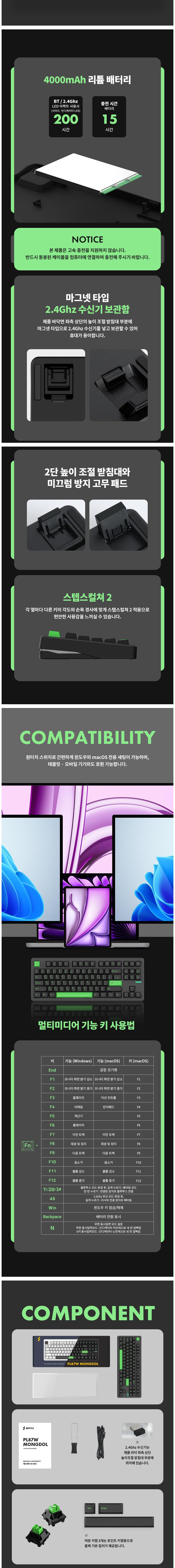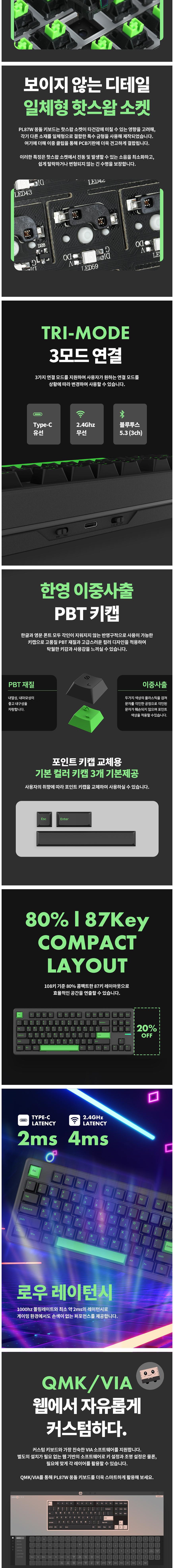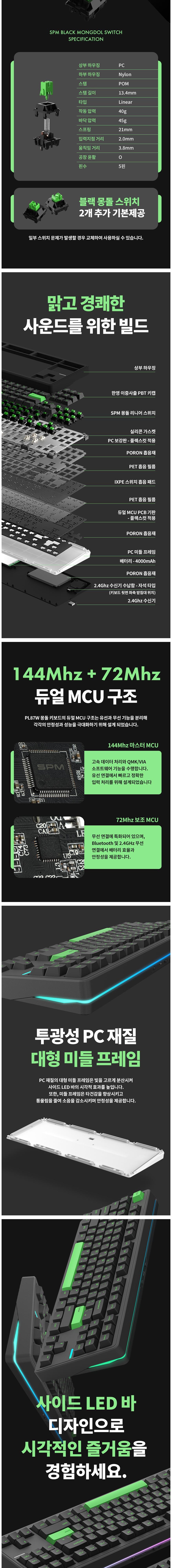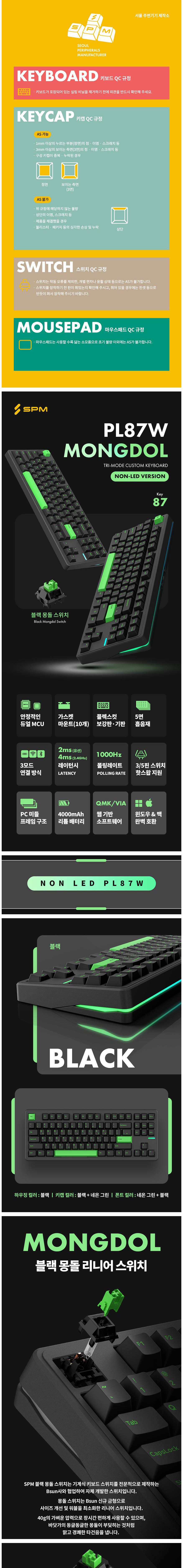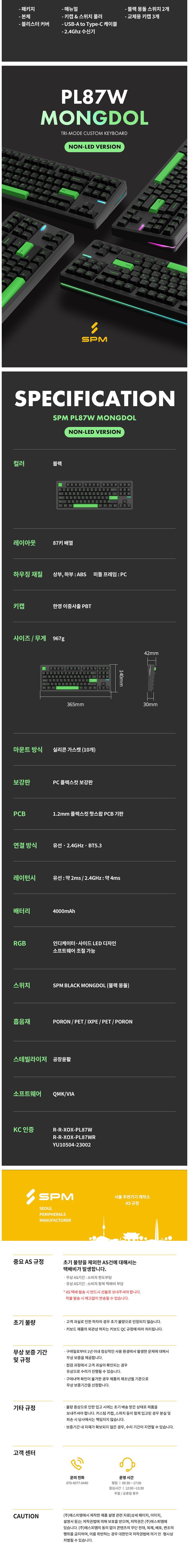 | 품명 및 모델명 | SPM PL87W NON LED 몽돌 PBT 유무선 게이밍 텐키리스 기계식 키보드 핫스왑 블랙 PL87W NON-LED 제조사축 / PL87W | KC 인증정보 | 키보드 : R-R-XOX-PL87W, 리시버 : R-R-XOX-PL87WR, 배터리 : YU10504-23002 |