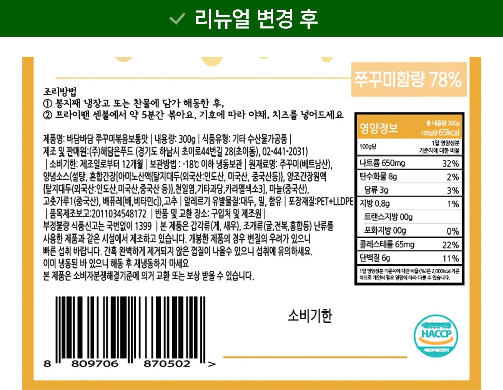 - 섭취방법: 즉석반조리식품