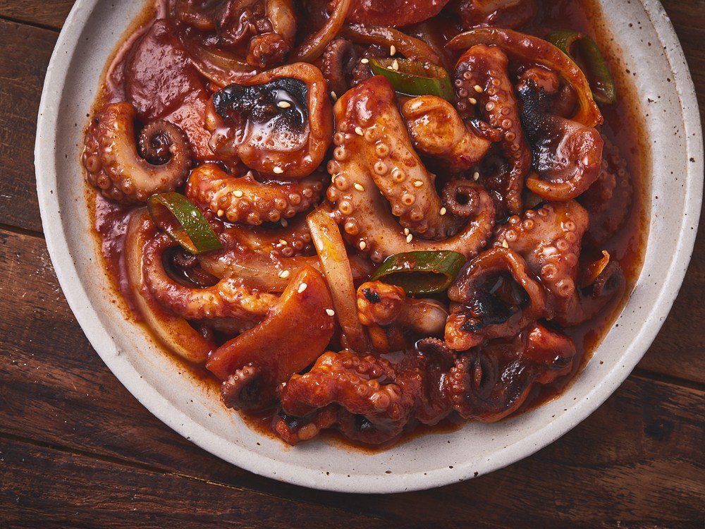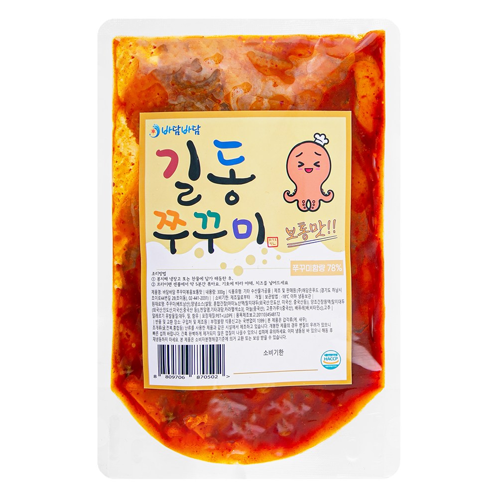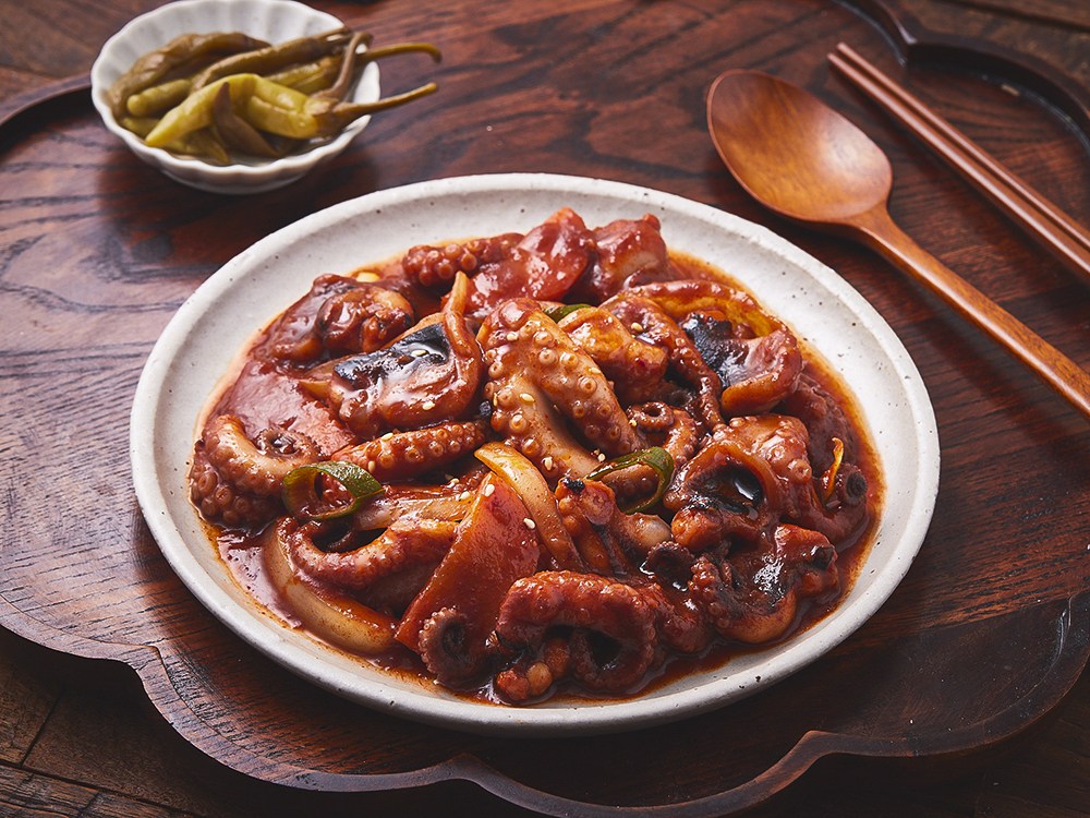 간단히 볶기만 하면 완성되는 쭈꾸미볶음이에요. 통통하게 살이 오른 주꾸미를 사용해 쫄깃쫄깃한 식감을 만끽할 수 있는데요. 매콤한 풍미를 적절히 살린 보통맛으로, 뛰어난 감칠맛을 자랑한답니다. 취향에 맞는 채소만 더해 밥반찬이나 술안주로 즐겨보세요.