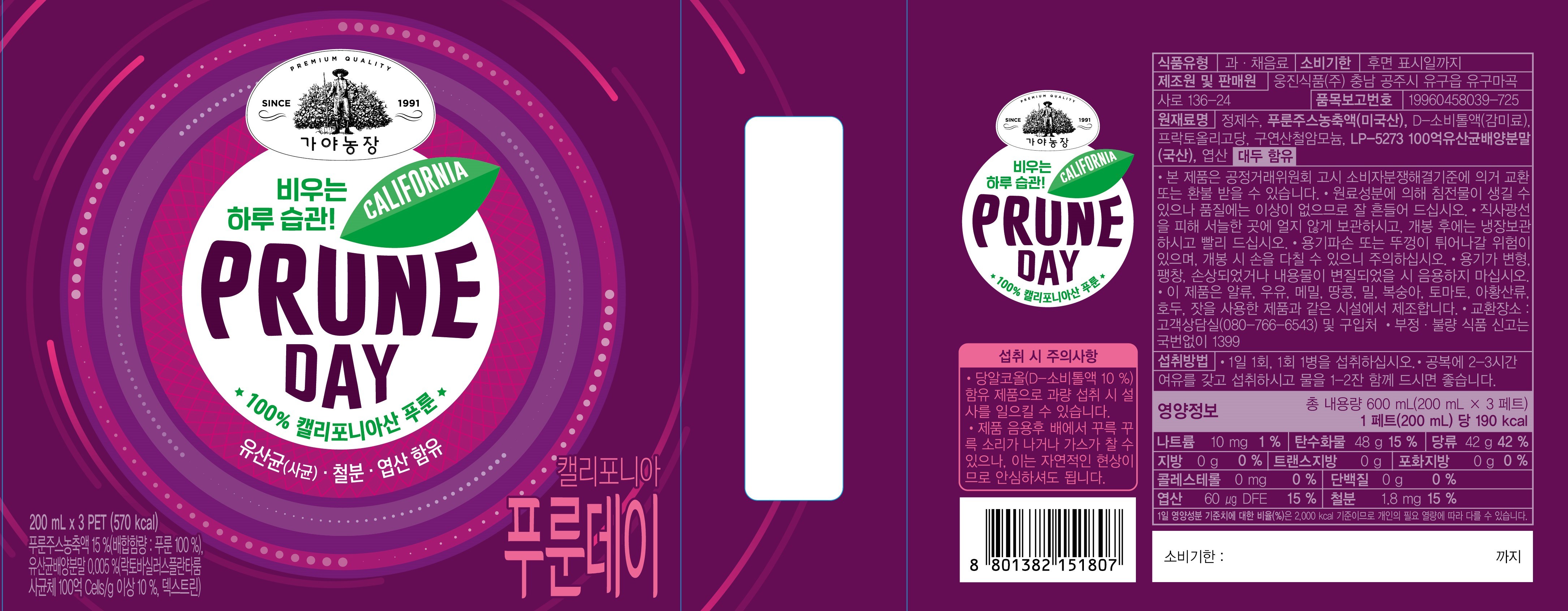 | 제품명 | 가야농장 캘리포니아 푸룬데이 | 식품의 유형 | 컨텐츠 참조 |