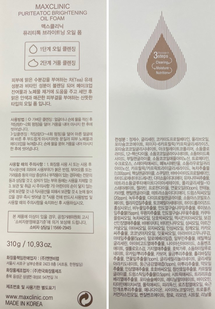 | 화장품제조업자, 화장품책임판매업자 및 맞춤형화장품판매업자 | 컨텐츠 참조 | 제조국 | 대한민국 |