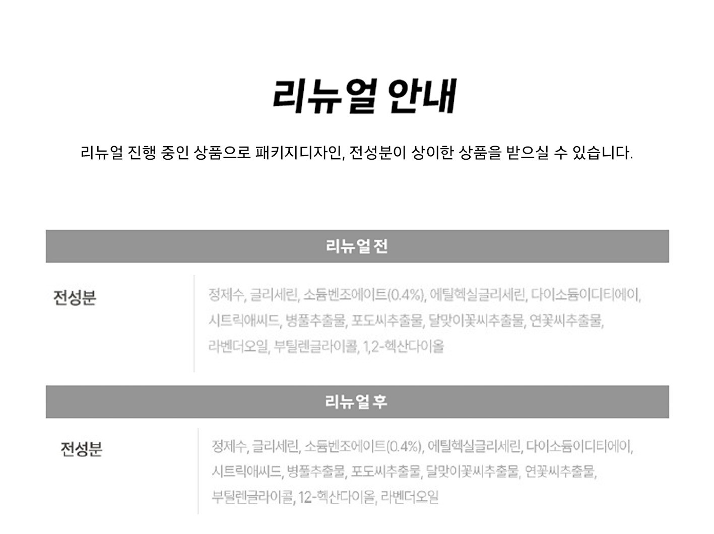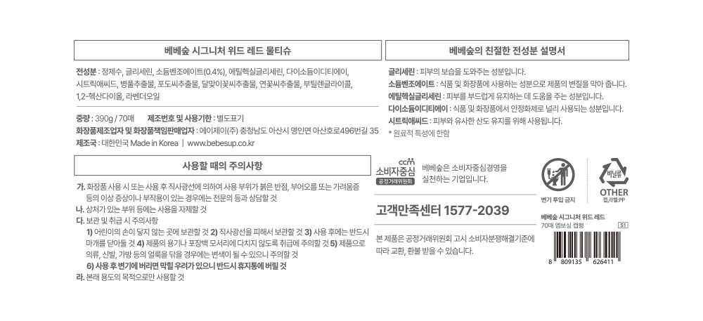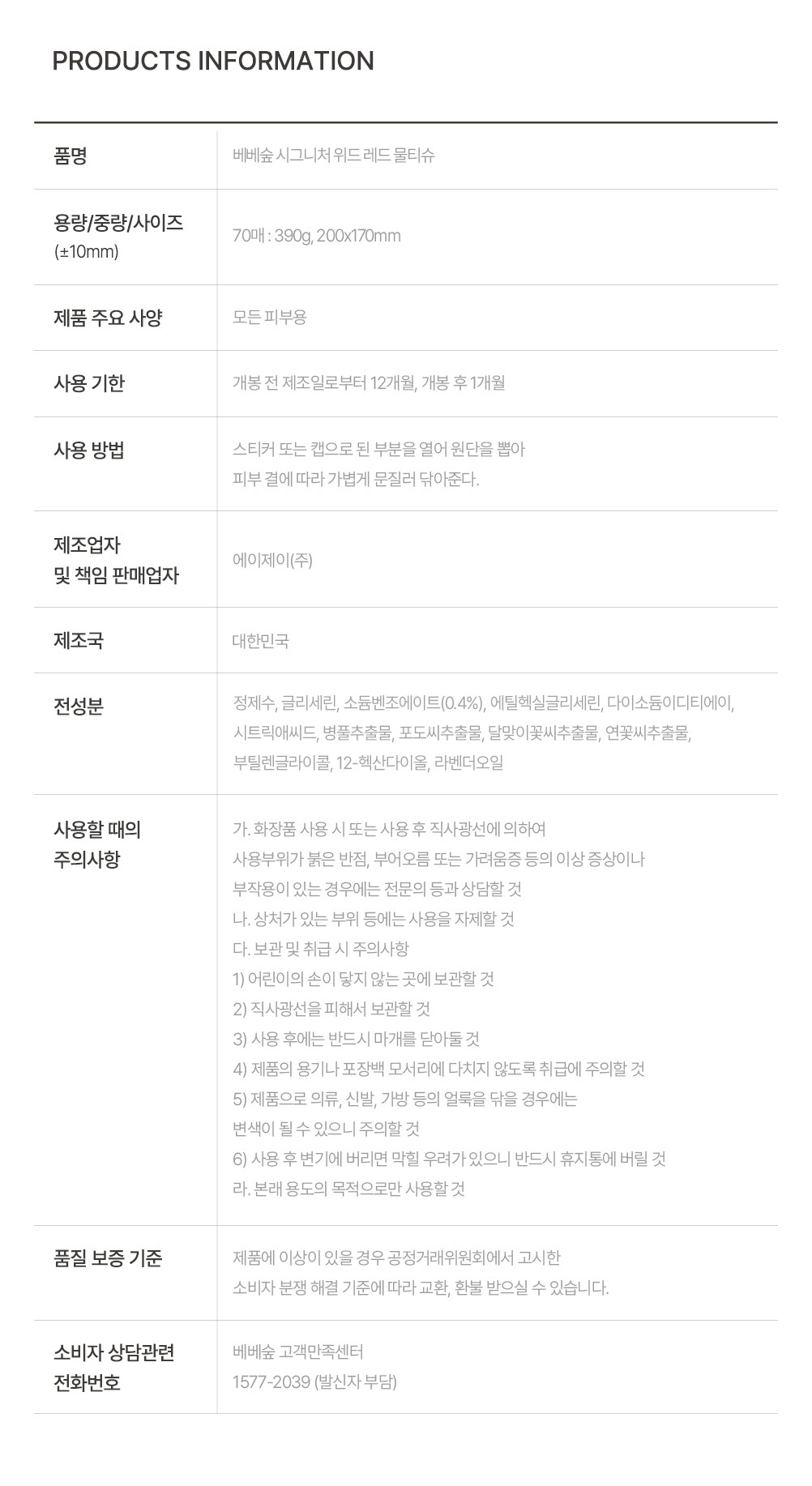 | 용량(중량) | 컨텐츠 참조 | 제품 주요 사양 | 모든 피부용 |