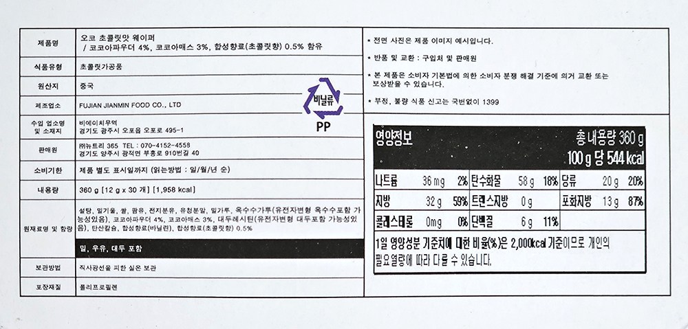 | 제품명 | 오코 초콜릿맛 웨이퍼 | 식품의 유형 | 컨텐츠 참조 |