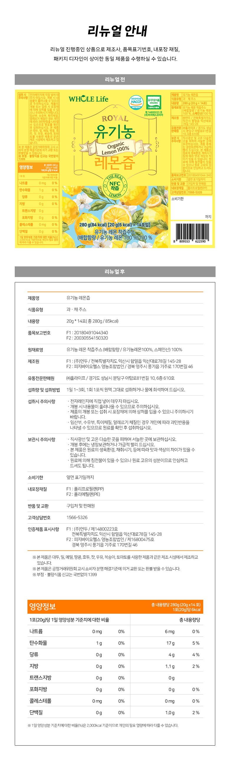 | 생산자 및 소재지 | 컨텐츠 참조 | 제조연월일, 소비기한 또는 품질유지기한 | 소비기한(또는 유통기한) : 2026년 05월 18일 이거나 그 이후인 상품 제조년월일 : 1945년 08월 15일 이후인 제조상품 |