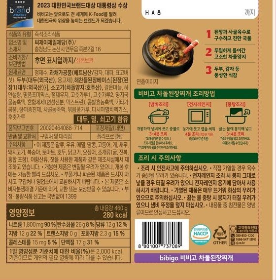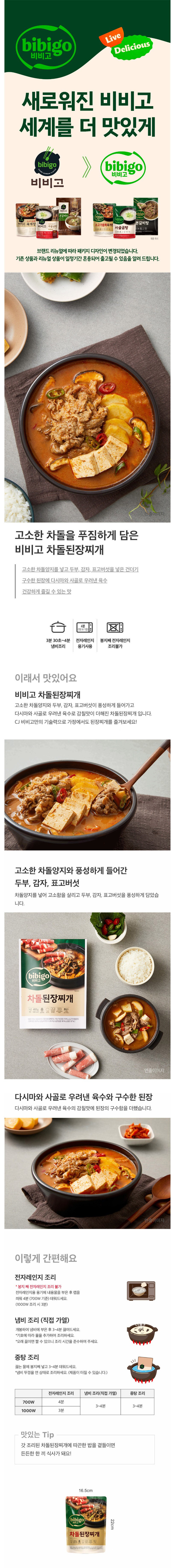 | 제품명 | bibigo 비비고 차돌된장찌개 | 식품의 유형 | 컨텐츠 참조 |