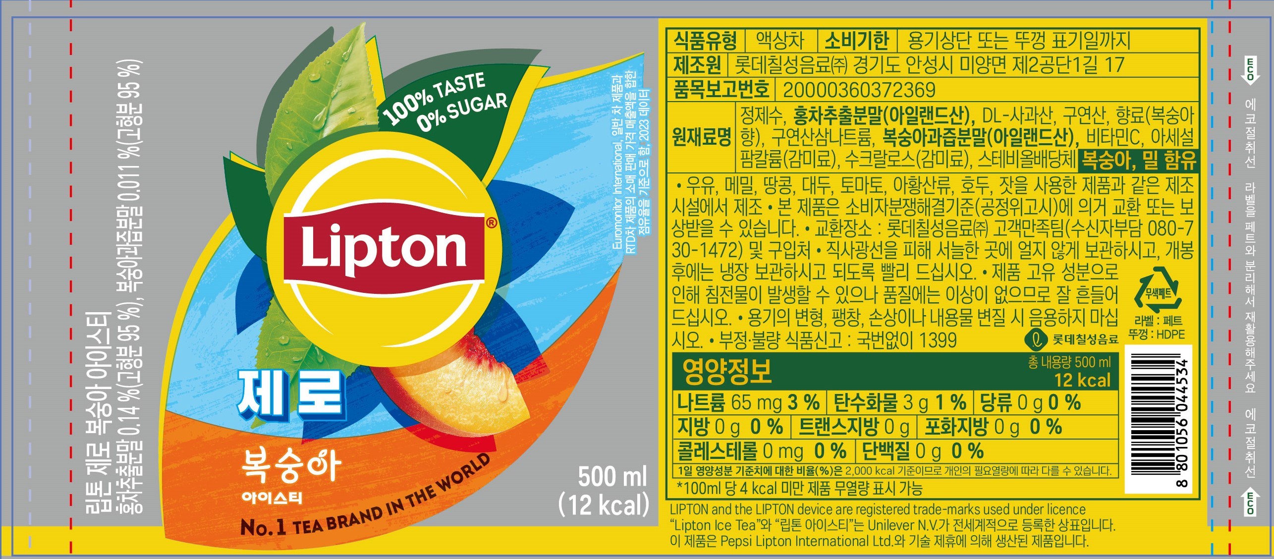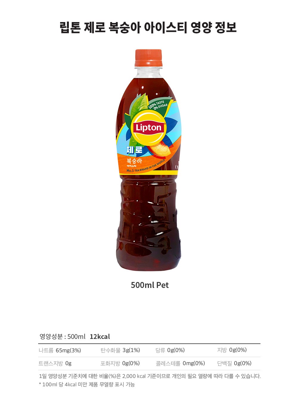 | 제품명 | 립톤제로복숭아 아이스티 | 식품의 유형 | 컨텐츠 참조 |
