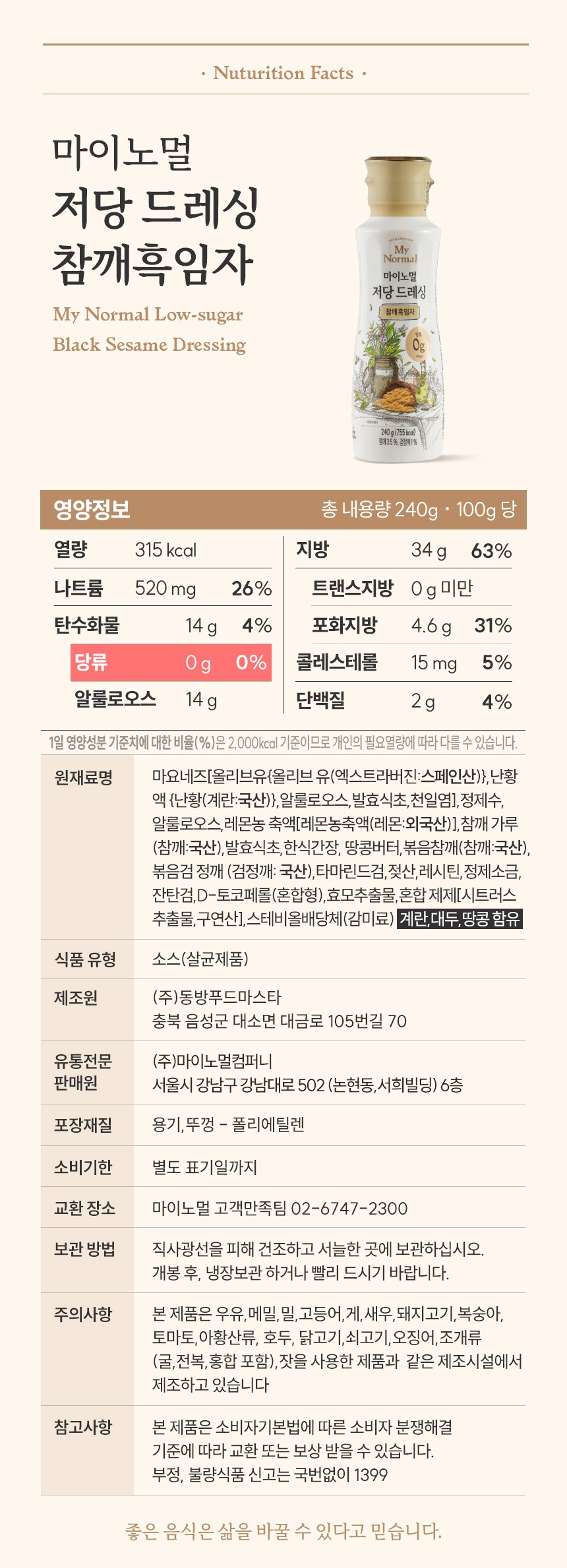 | 포장단위별 내용물의 용량(중량), 수량 | 240g, 1개 | 원재료명 및 함량 | 컨텐츠 참조 |