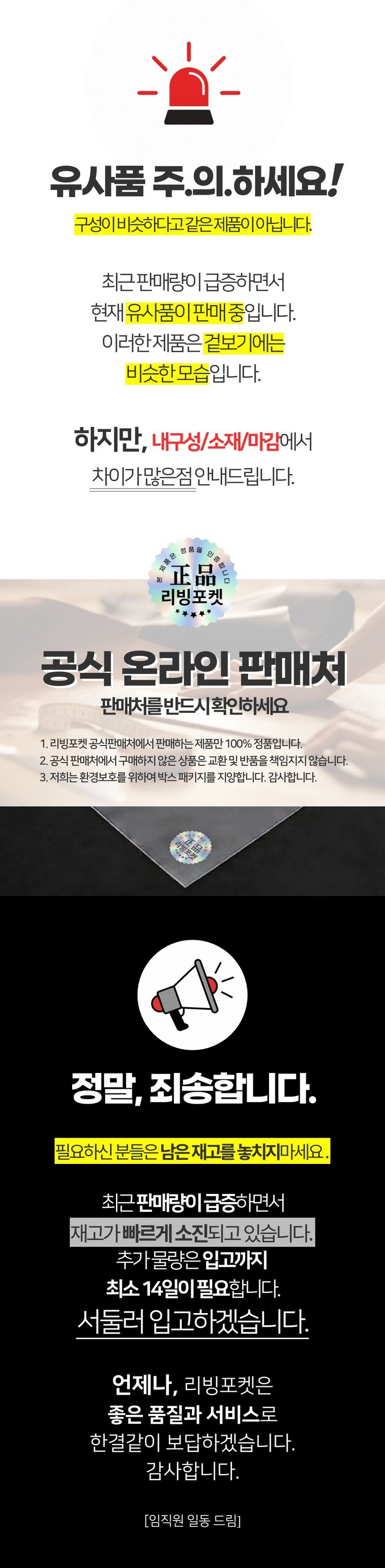 | 제조국(원산지) | 중국 OEM | 제조자(수입자) | 리빙포켓 협력사 |
