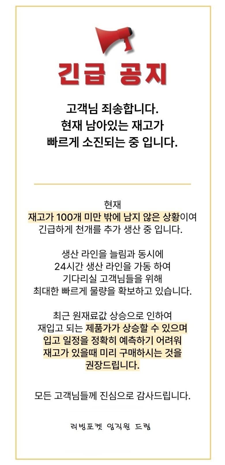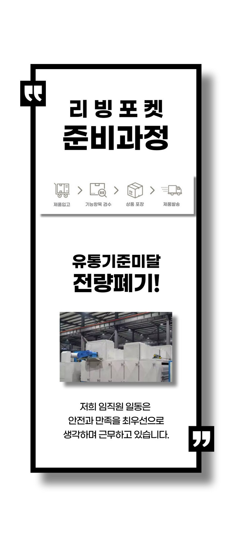 | 제조국(원산지) | 중국 OEM | 제조자(수입자) | 리빙포켓 협력사 |