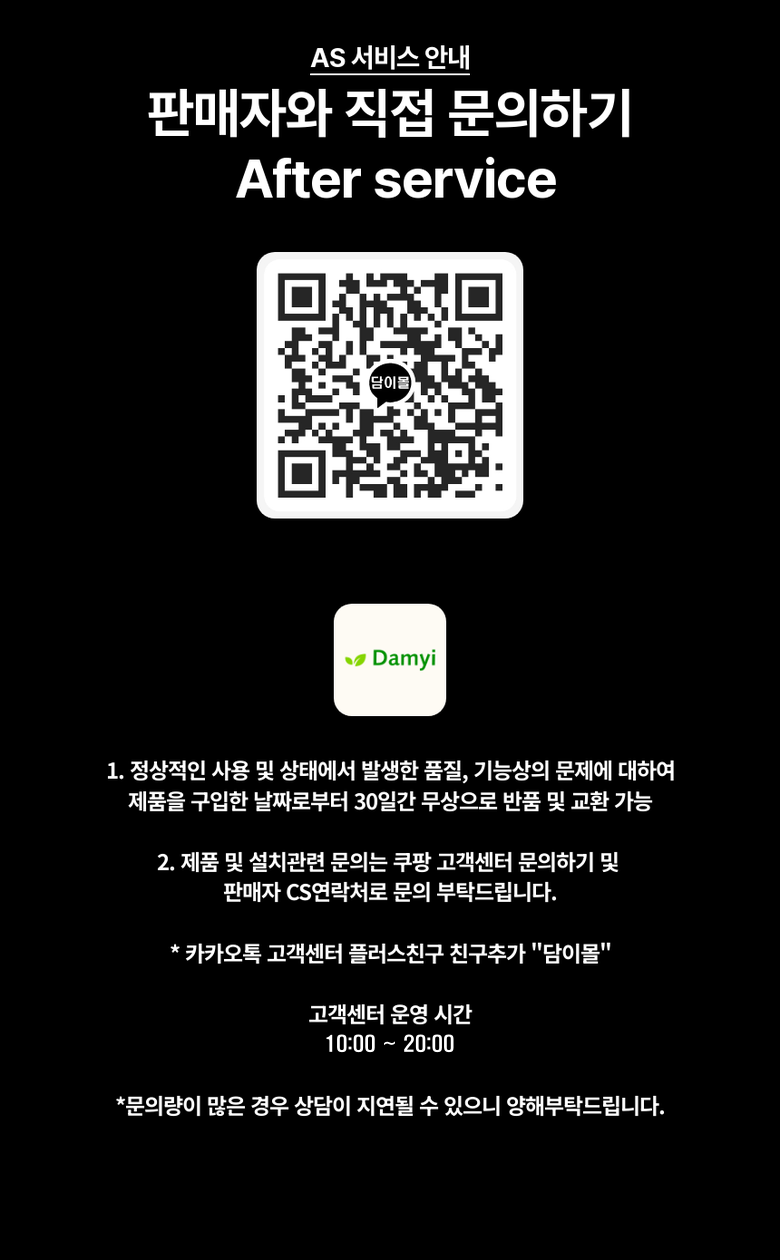 | 소비자상담 및 교환반품 문의 | 쿠팡고객센터 1577-7011 배송 및 환불/교환에 대한 문의는 마이쿠팡-고객센터 내 상담하기를 이용해주세요. | ||